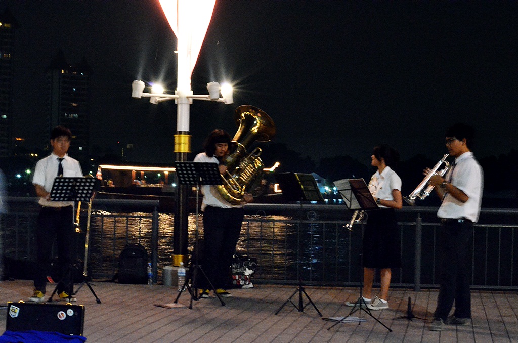 น้า...น้า...ช่วงกลางคืนจะมีน้องๆนักเรียนมาเล่นดนตรีให้ฟังนะน้านะ...บรรเลงเพลงเพราะด้วยวุ๊ยยยย..............งุงิงุงิ
