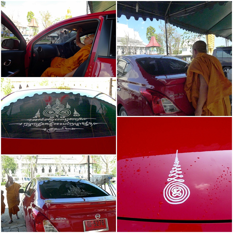 เขียนยันต์รอบคันเลยค่ะทั้งด้านนอกด้านใน