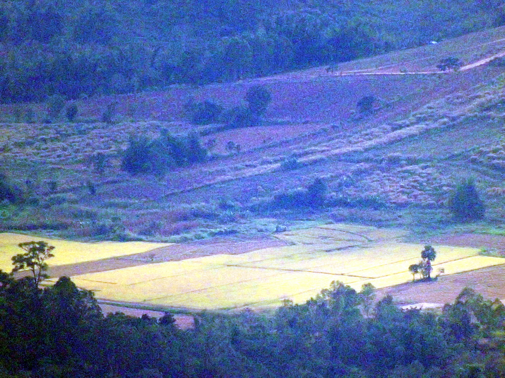 นาข้าวสีทองในทุ่งเขาค้อแปลงนี้ดูเด่นมาก มองจากบนผาตัด น่าจะไกลออกไปประมาณ 15 กิโลได้ ซูมสุดกำลัง