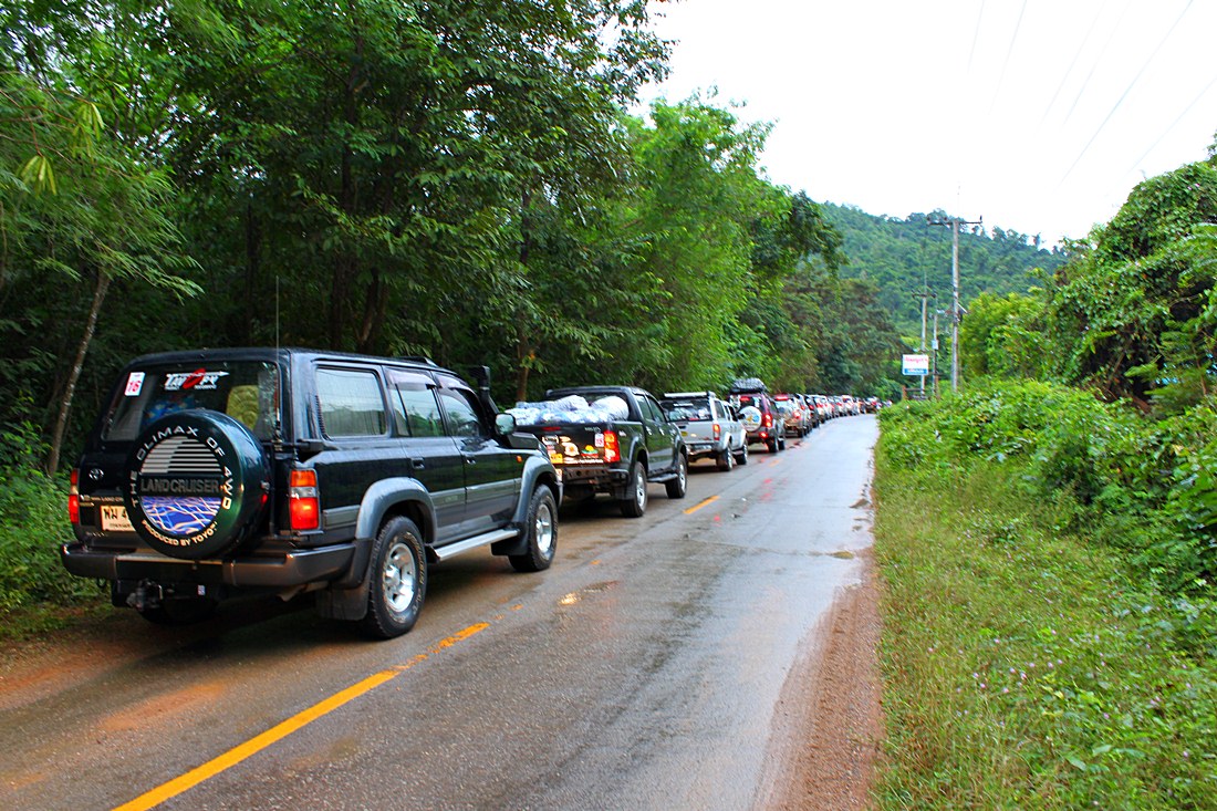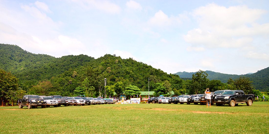 เมื่อพร้อมกันแล้ว ก็ตั้งขบวนเตรียมออกเดินทางได้เลยครับ มีรถจำนวนทั้งหมดประมาณ 24 คันครับ