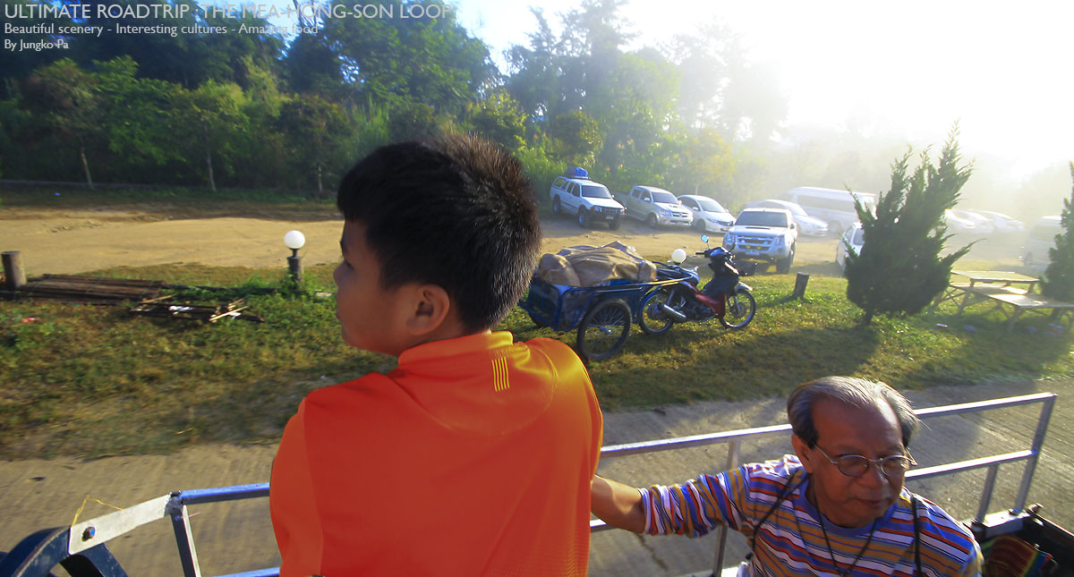ลูกทัวร์นั่งกันหัวสั่น หัวคลอนไปตามๆ กัน สนุกดี น้องจีนหน้าตายังไม่ตื่นดีเลย แต่พามาอย่างนี้เด็กๆ จะชอบที่ได้เจอวิวสวยๆ ใหม่ๆ และที่สำคัญอากาศบริสุทธิ์สดชื่นมากๆ เลยครับ