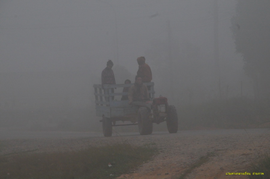 บรรยากาศในเมืองโพนสะหวัน ยามเช้าอากาศหนาวมาก หมอกลงจัดแต่ชาวบ้านก็ยังดำเนินชีวิตได้อย่างปกติ