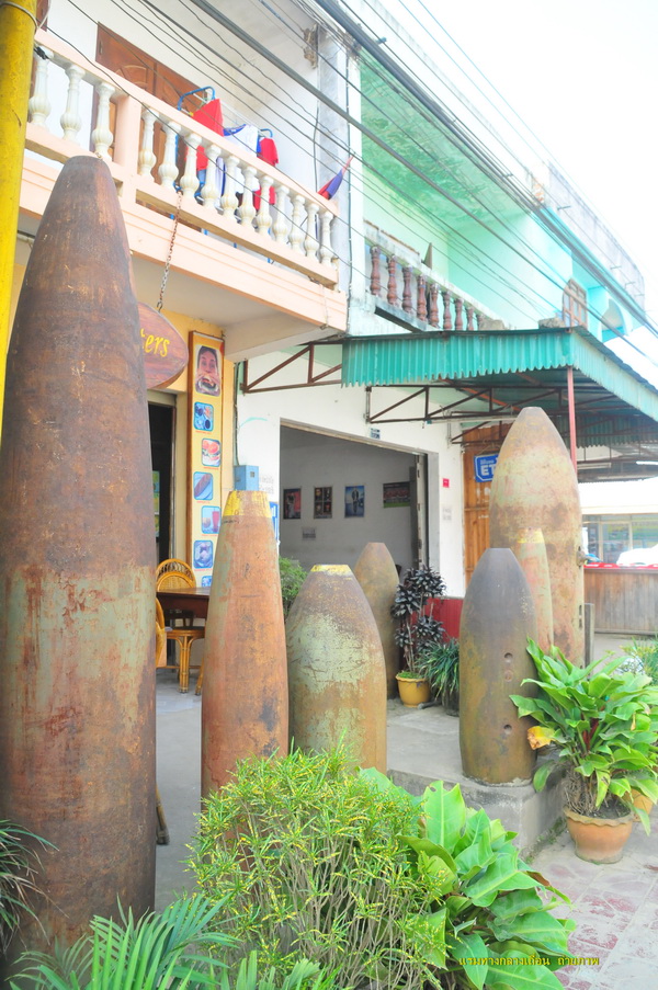 และแล้วก็เจอร้านที่ตกแต่งด้วยลูกระเบิด แต่ร้านเจ๊งไปแล้วเหลือแต่รั้วของร้านที่ทำจากลูกระเบิด