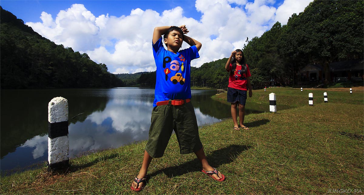 เด็กๆ วิ่งเล่นกันสบายๆ ไปเลย รอให้คนอื่นไปกันก่อน ไม่ไปรบกวนวิวของพวกเขา