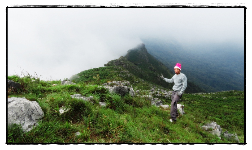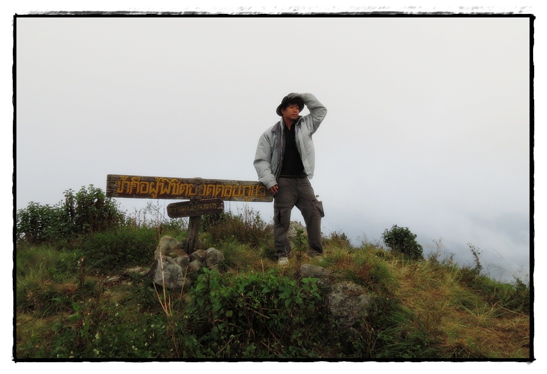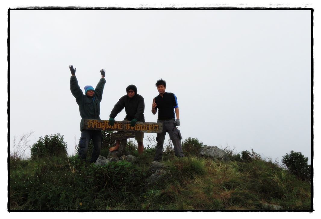 ขอบอกก่อนเลยคับ..ลมแรงมาก...หมอกมาเยอะ..แดดไม่ต้องพูดถึง (ไม่มี)...เบี้องหลังคือดอยภูแวน้อยคับ..