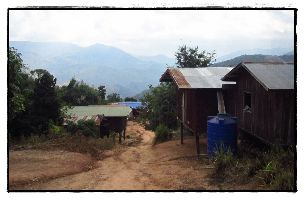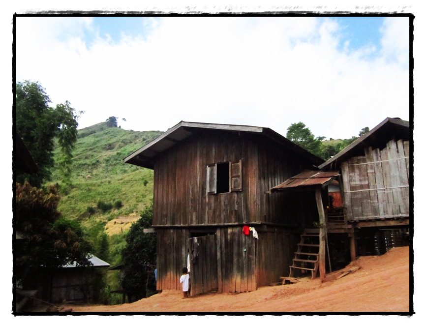 แม่ผมเดินมาส่ง..ที่หมู่บ้านปู่ดู่...เบี้องหลังบ้านหลังนี้..คือทางเดินขึ้นเขาที่ต้องผ่านดาบแรกคับ..