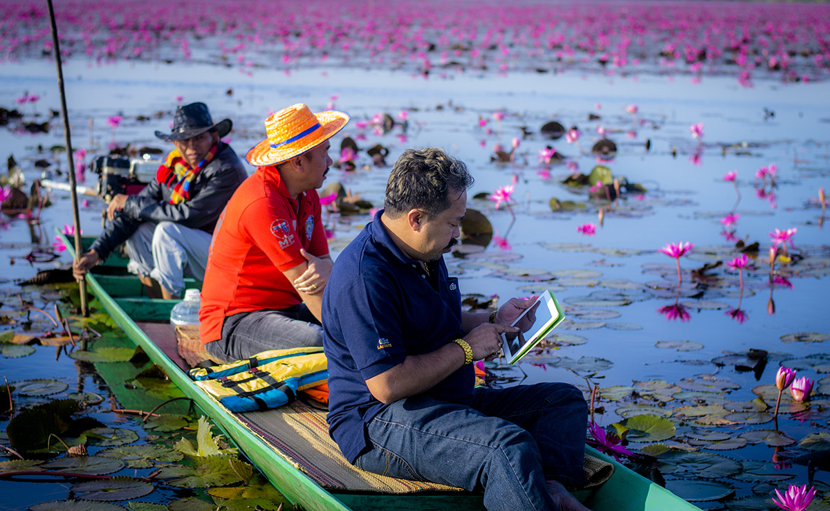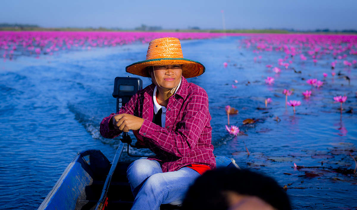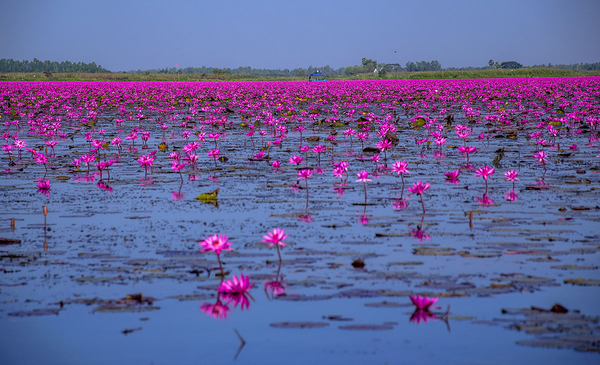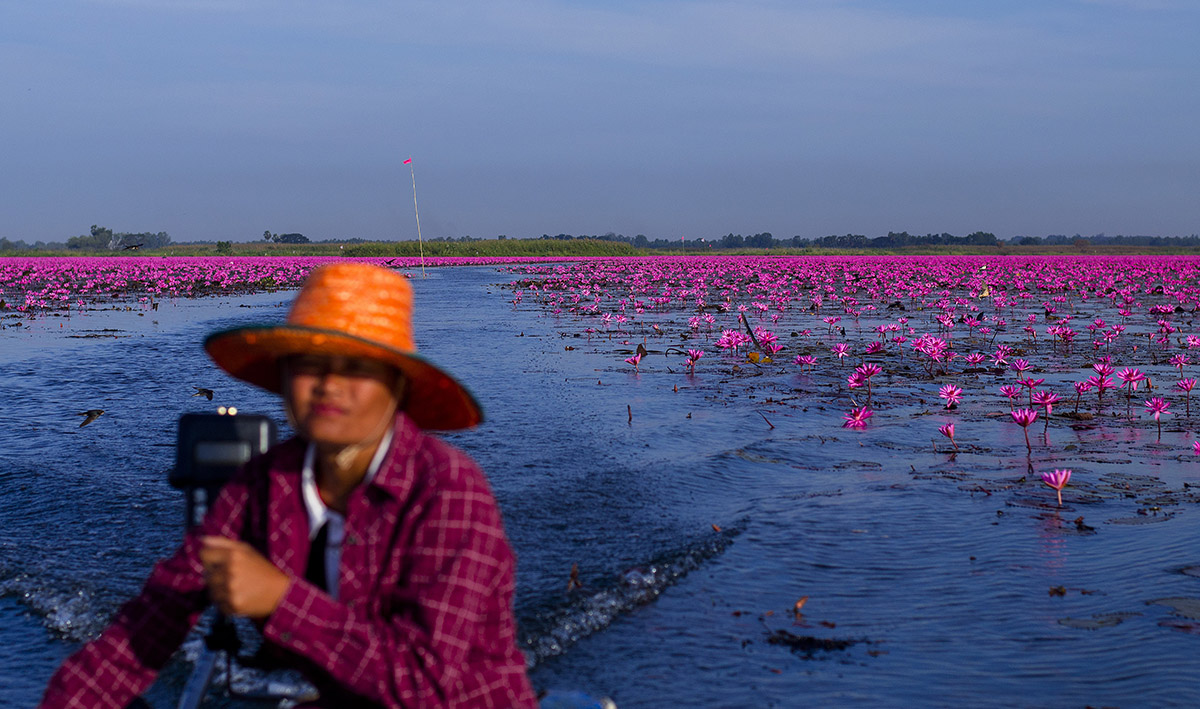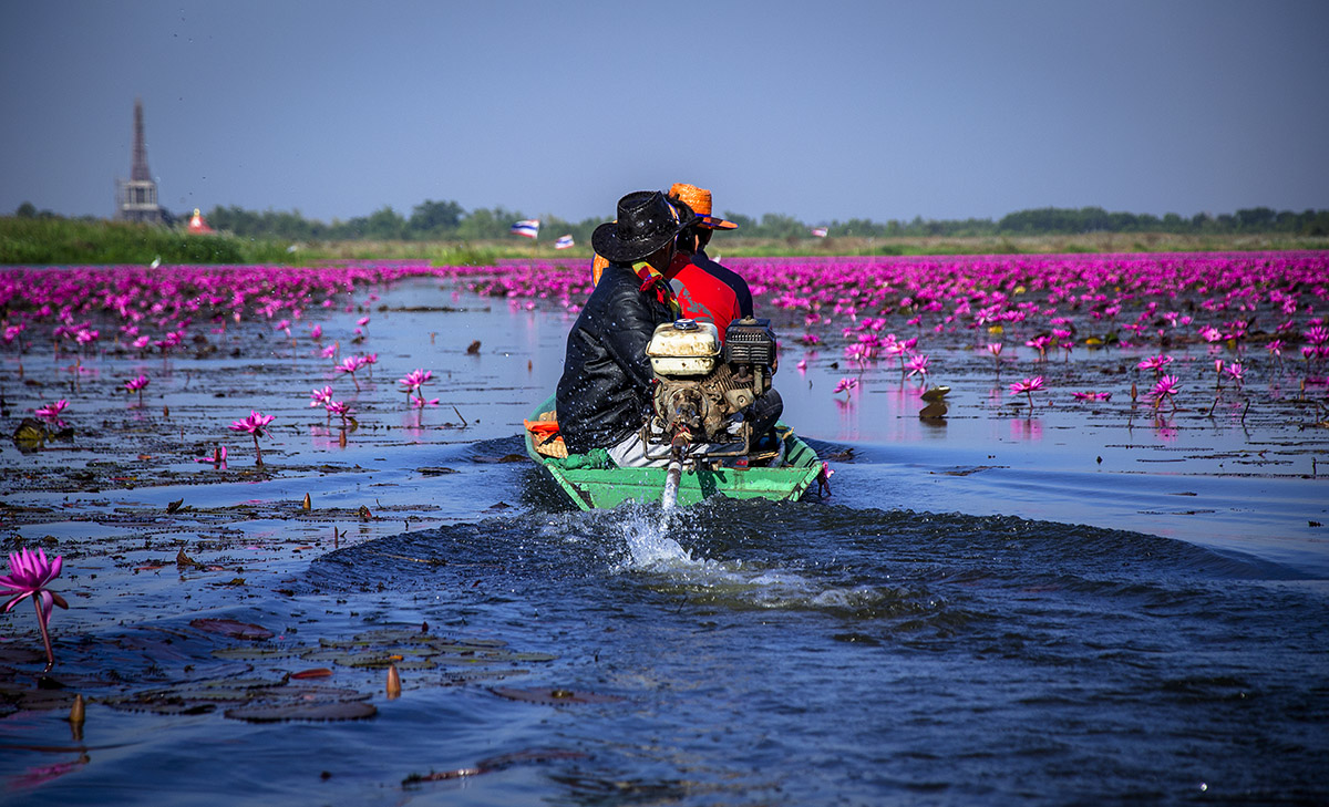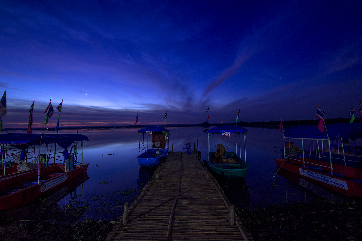 ท่าเรือที่จะไปชมทะเลบัวแดงตอนช้ามืด