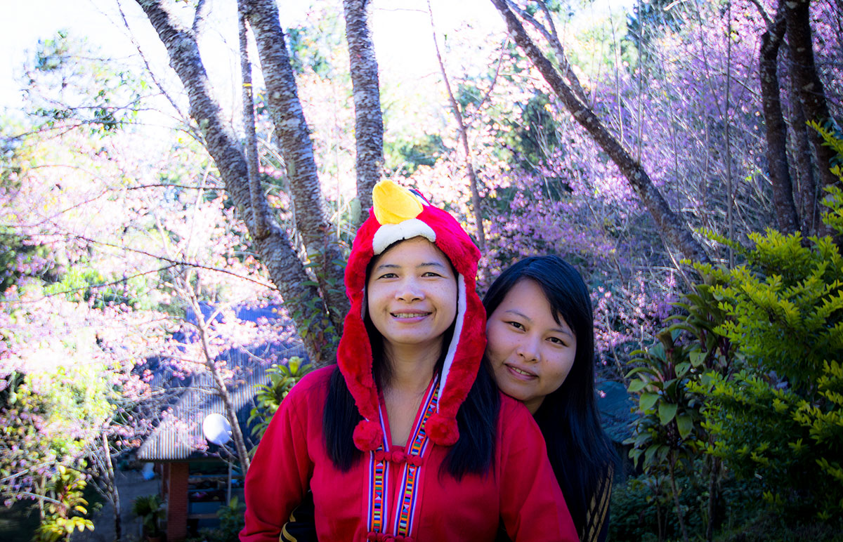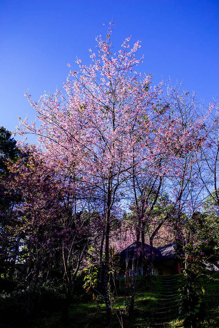 ระหว่างลงดอยผาตั้งมีดอกซากุระตลอดเส้นทางแต่ห่างๆกัน