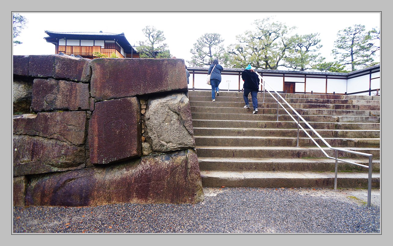 โชกุนตระกูลโทคุงาวะกลับเลือก วางตำแหน่งห้องและทางเข้าให้เห็นอย่างเด่นชัด ด้วยเหตุนี้ อาคารจึงมีลักษณะที่ข่มขวัญและแสดงอำนาจแก่ผู้มาเยือนอยู่ในตัว