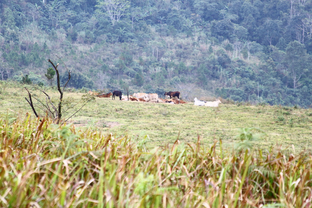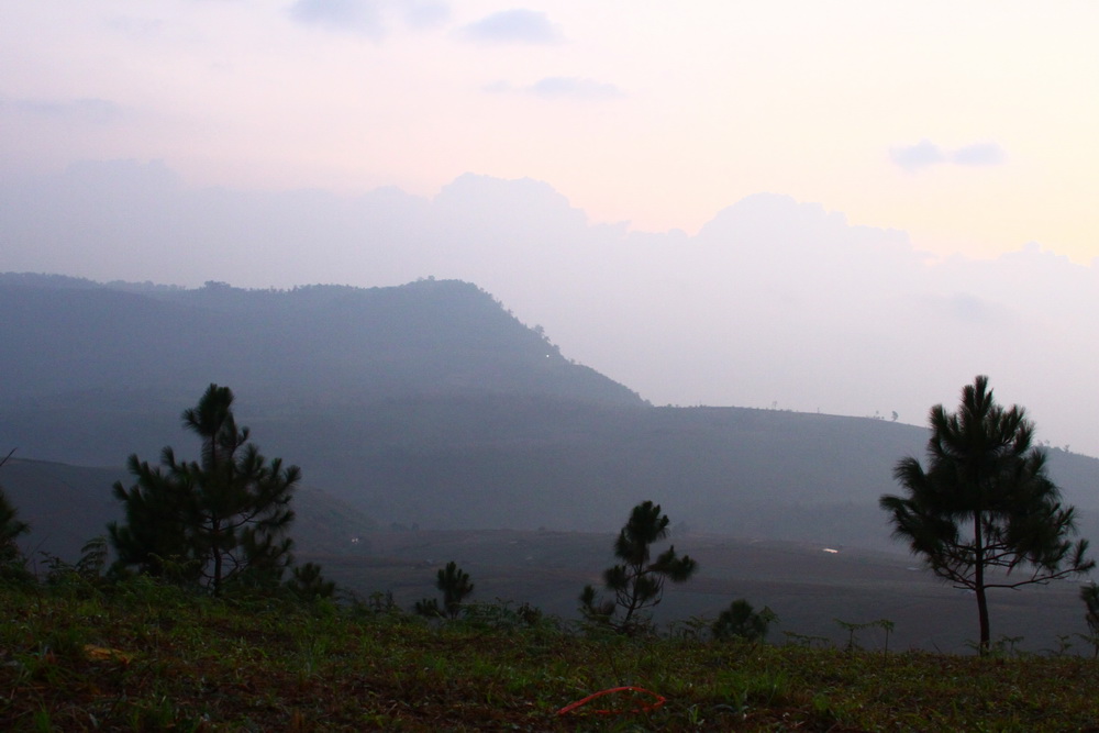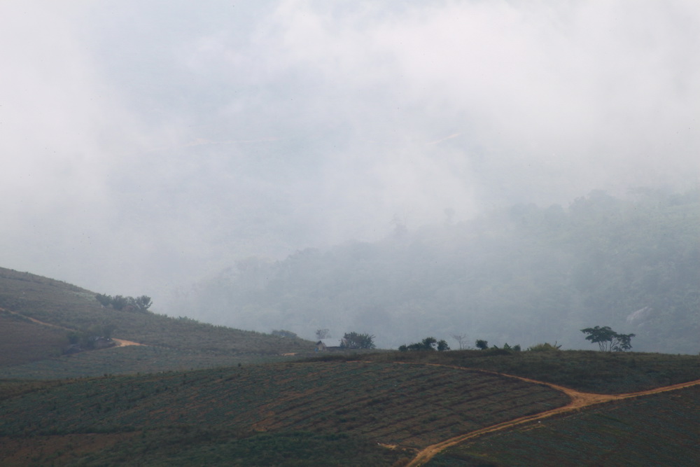 ถ่ายได้อย่างใกล้ชิด ตรงหน้ากระชานบ้านเลยครับ กับแบล็คกราวด์หมู่บ้าน ท่ามกลางไอหมอก ที่อ้อยอิ่ง