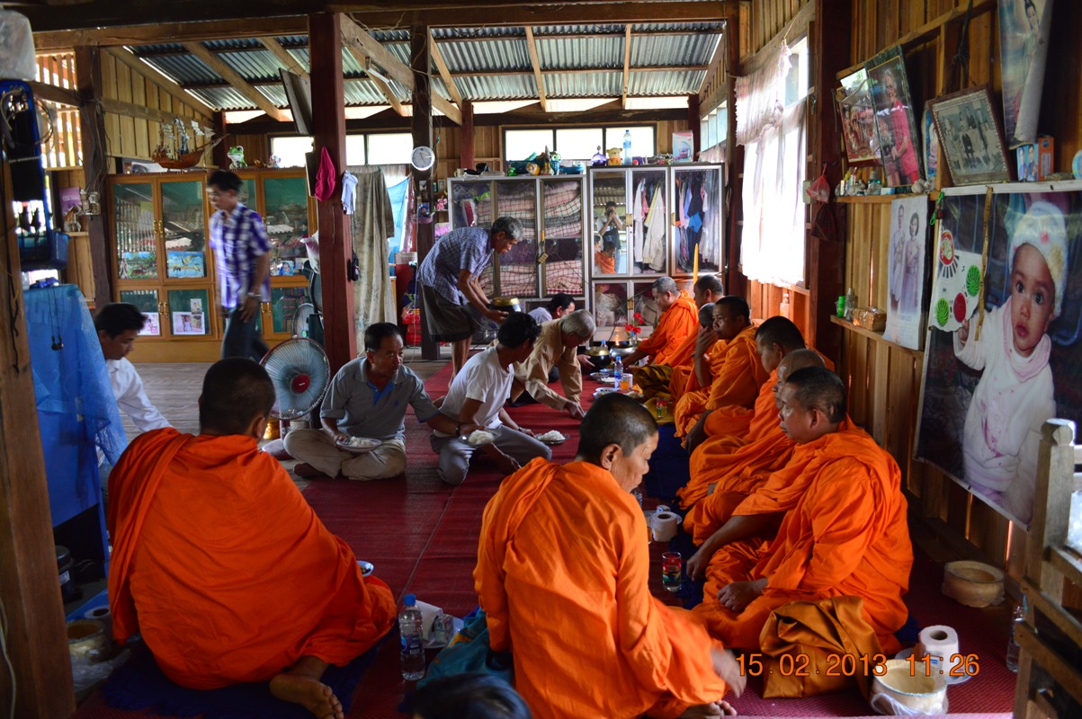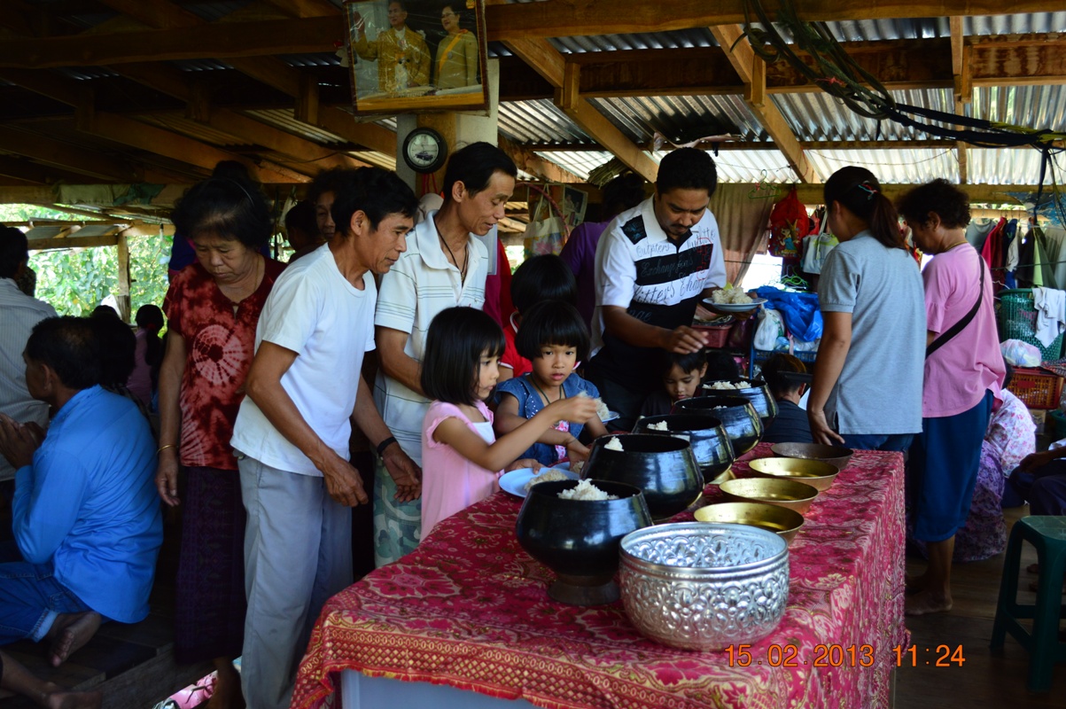 หลังเสร็จพิธีสงฆ์ ชาวบ้านที่มาร่วมงานกันก็ล้อมวงกันทานอาหาร สนทนาตั้งวงกัน