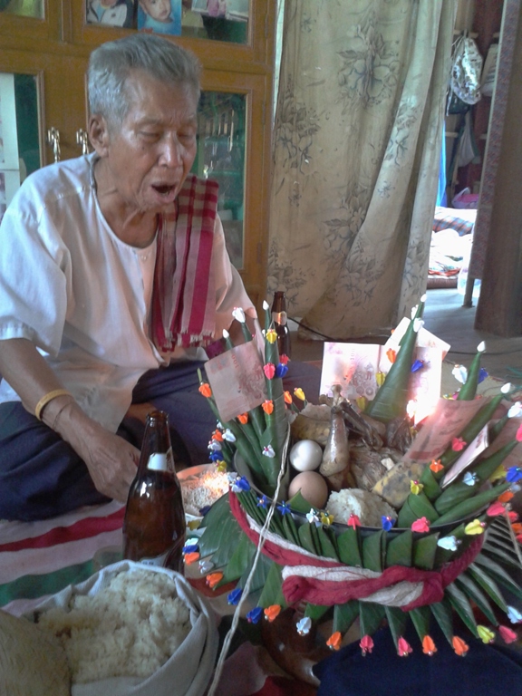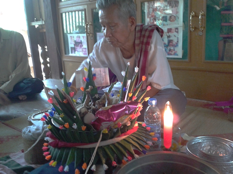 หลังจากเสร็จพิธีทำบุญบ้านแล้ว พ่อแม่ก็จัดบายศรีสู่ขวัญให้ผมกับครอบครัวต่อ ทางเหนือเรียกเอาขวัญ คงเหลือแต่ญาติๆกันร่วมงานกันต่อที่เห็นก็ อุ้ยผาย คนเดิมหมอขวัญประจำหมู่บ้านเริ่มทำพิธี