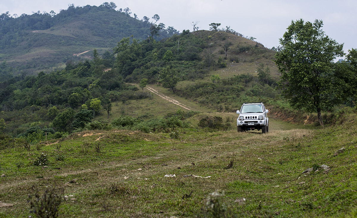 มีสะพานชั่วคราวไว้..แต่ทางเป็นช่วงโค้งและแคบ..มีรอยรถลุยเข้าไปในป่าลุยขี่โคลนเพื่อให้ตั้งลำรถให้ทางตรงข้ามสะพานไม้