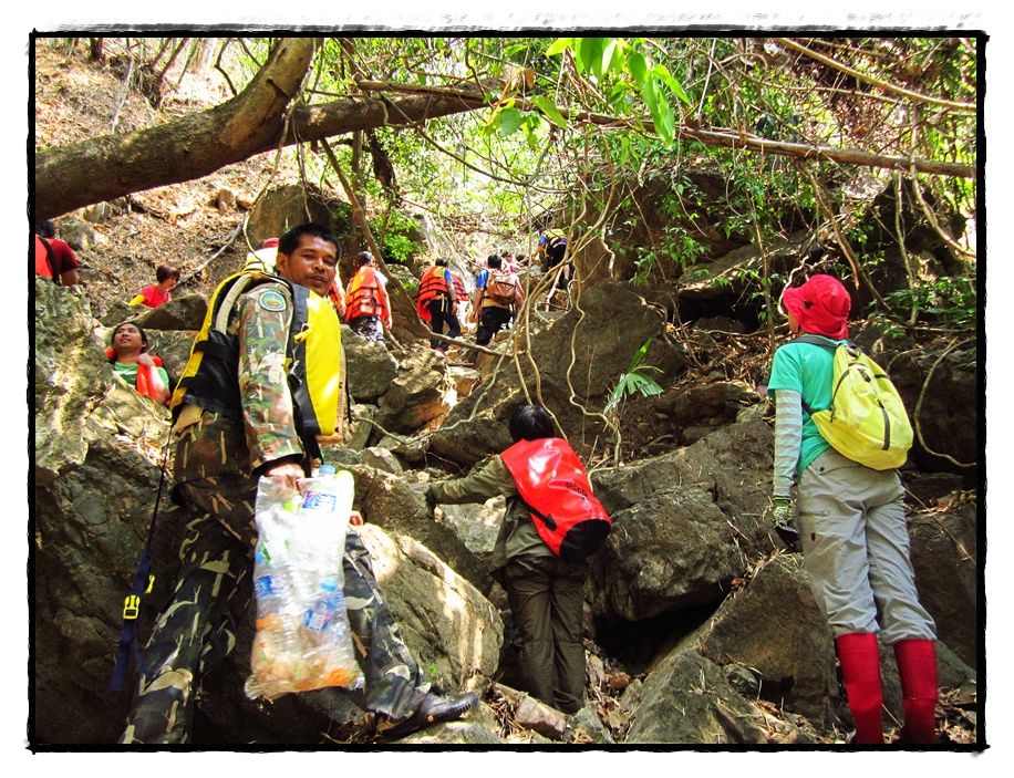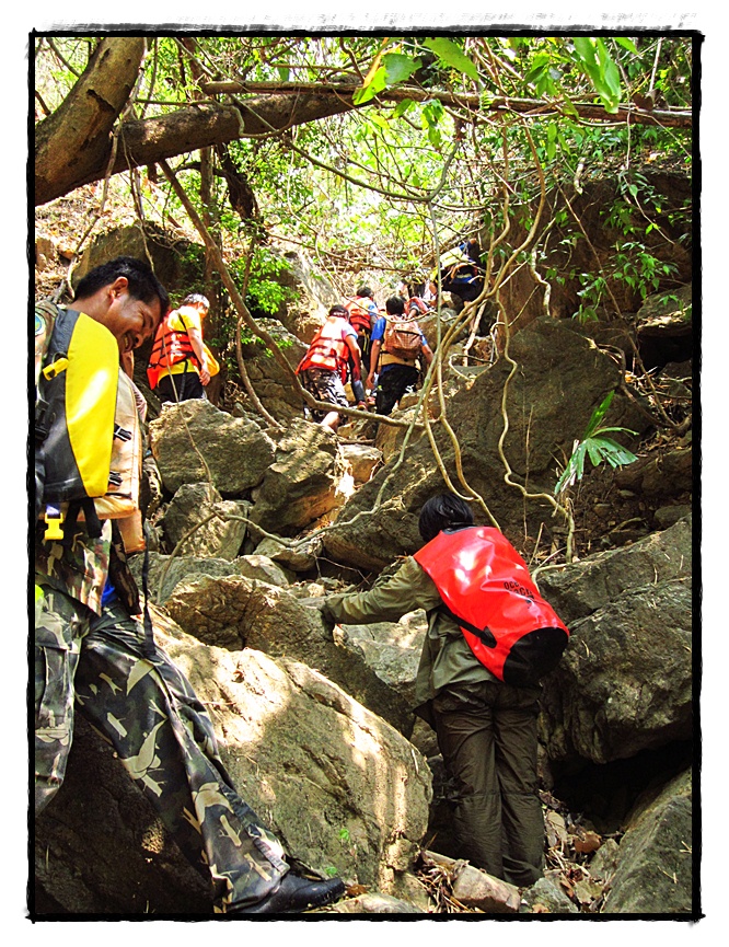 ปีนขึ้นไปตามซอกหินที่ลงมา..ประมาณ 1 ก.ม กว่าๆ