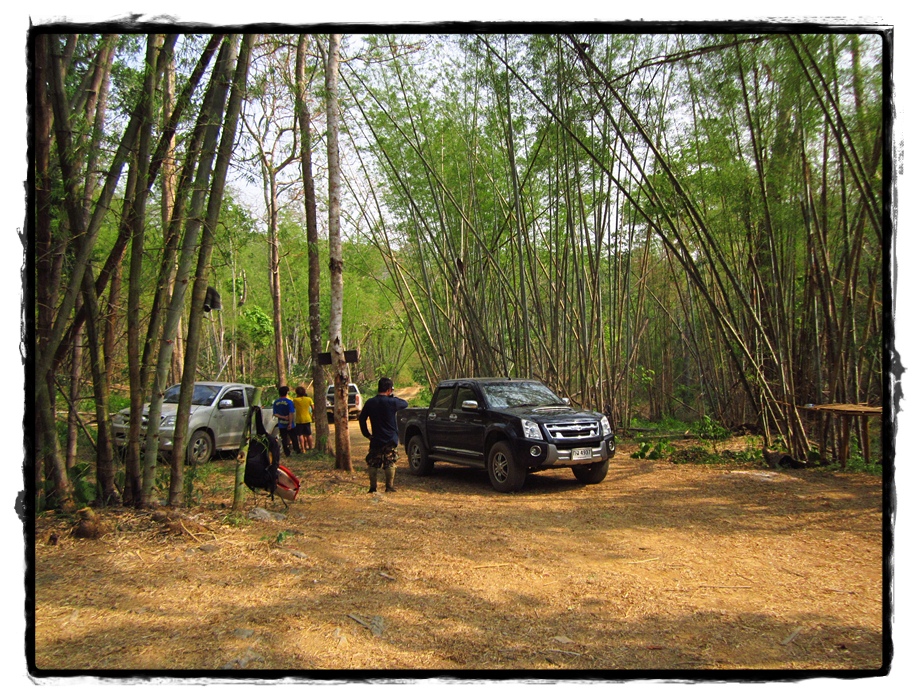 เดินขึ้นเขาผ่านป่าไผ่มาก็ถึงที่จอดรถรับนักท่องเที่ยวกับหน่วยฯ...แต่เมื่อเช้ามาสายเลยต้องขับรถตามมาเอง..ปกติเขาก็ไม่ได้ให้เอาเข้ามานะ..จากจุดนี้กลับไปที่หน่วยก็สัก 15 ก.มได้...แต่ผมไม่ได้กลับทางที่ไปหน่วย..ลงมาที่สะพานลาวผ่านน้ำตกผาสรรค์เลย.