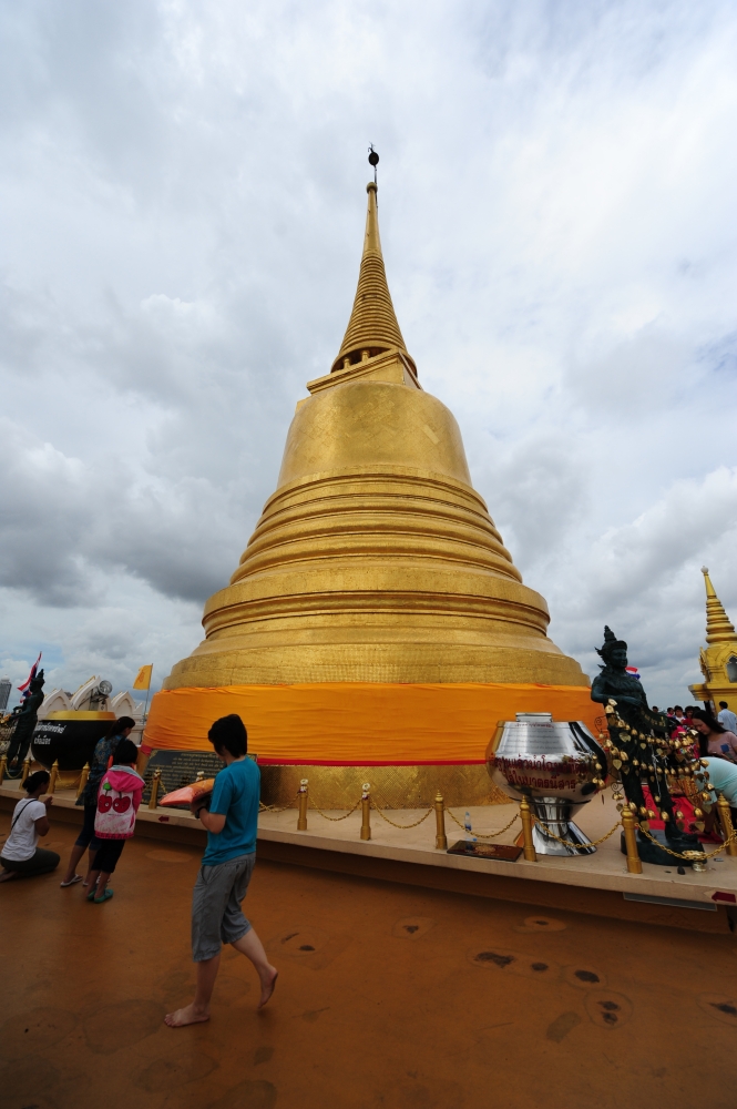 คนทำบุญบนเจดีย์ภูเขาทอง ครับ