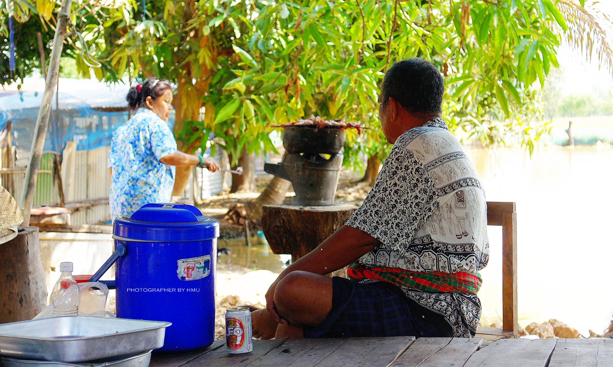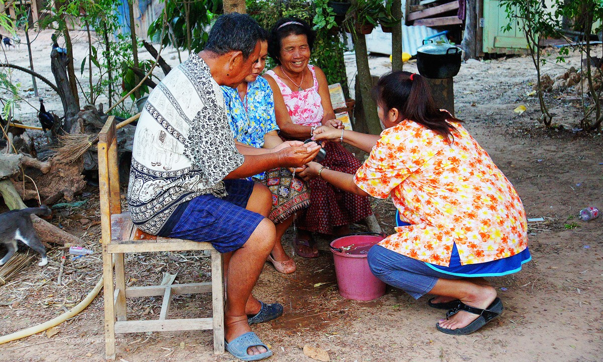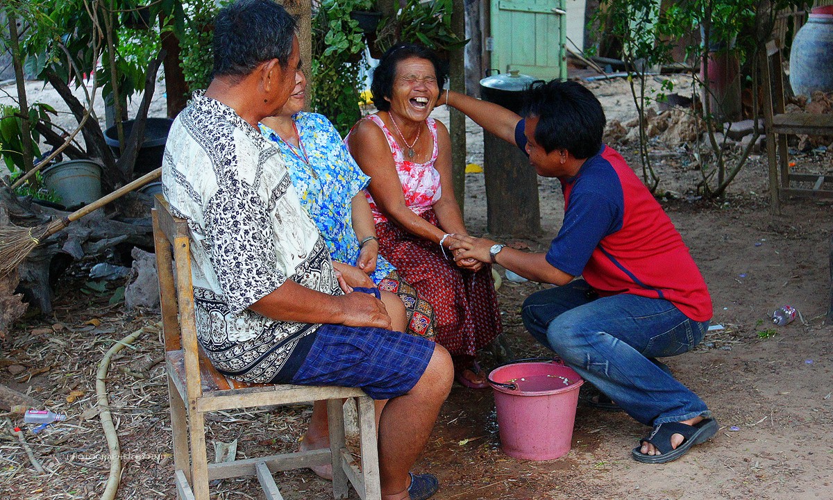 คุณยายที่นาติดกัน เดินผ่านมาเลยเรียกมาร่วมสรงน้ำด้วย ให้พรลูกหลาน