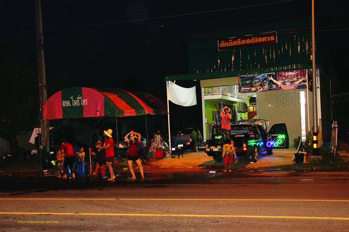 ระหว่างทางกลับบ้าน สองข้างทาง ผู้คนยังสนุกสนานกัน กลับมาถึงบ้านเกือบสองทุ่ม สนทนากันต่อ คืนนี้ นิทราราตรีสวัสดิ์ครับ