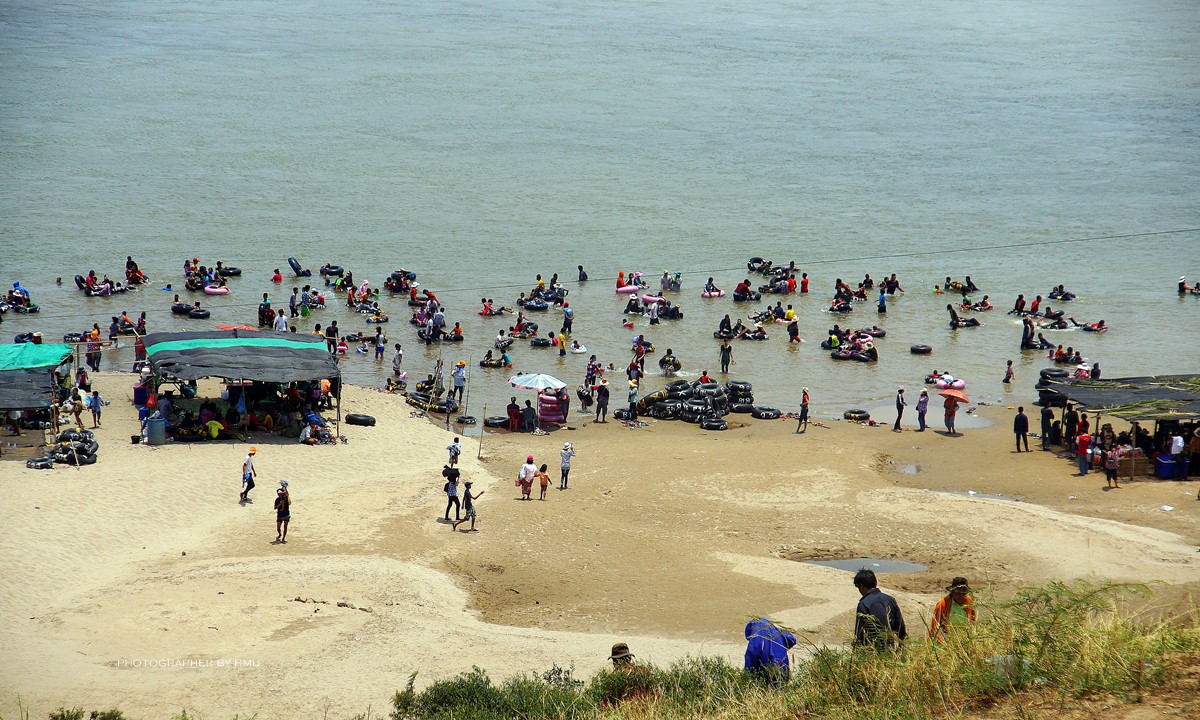 ท่าน้ำหน้าวัดคนเยอะเหมือนกัน แต่แดดจัดมาก.