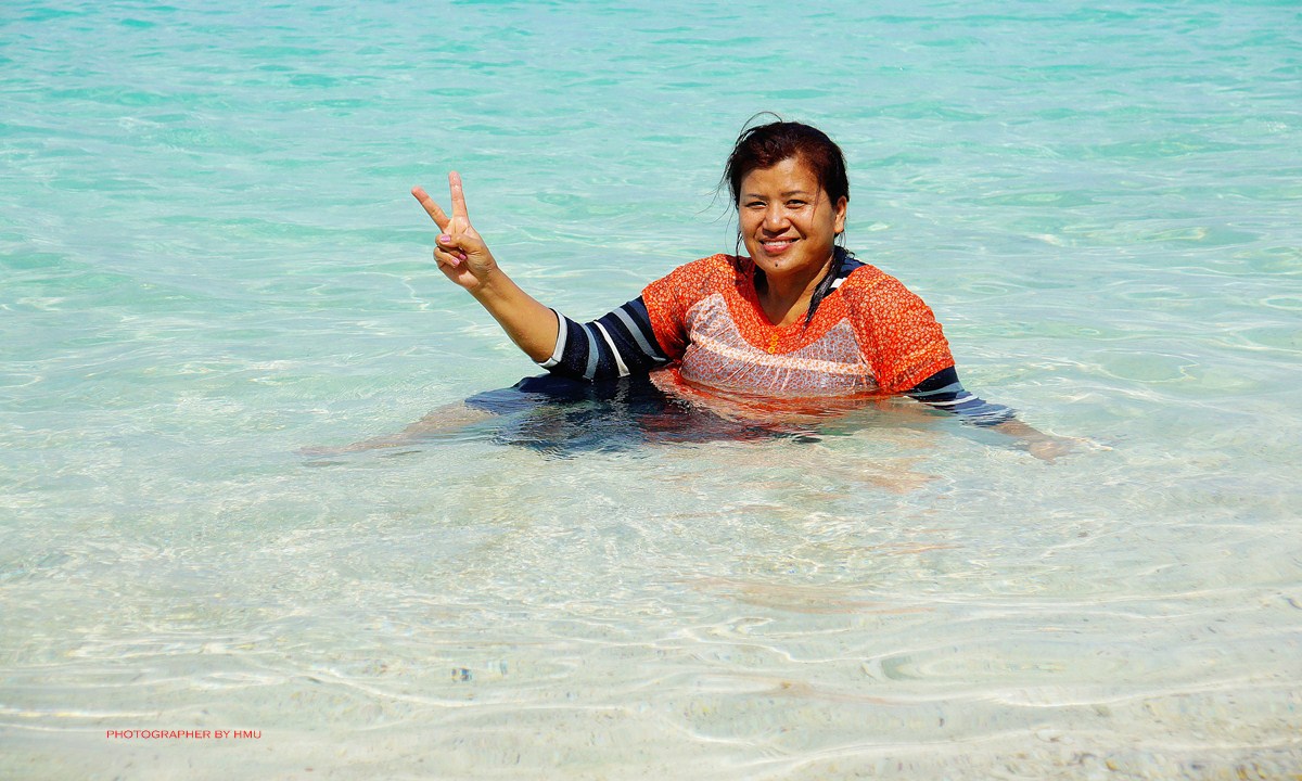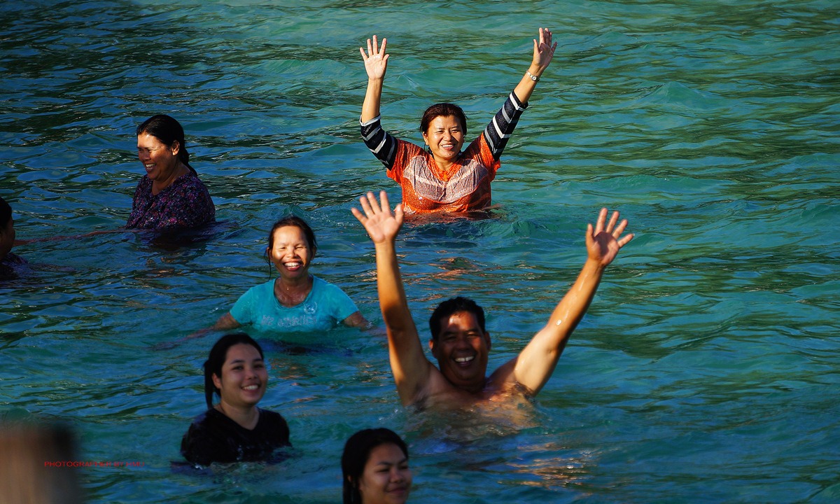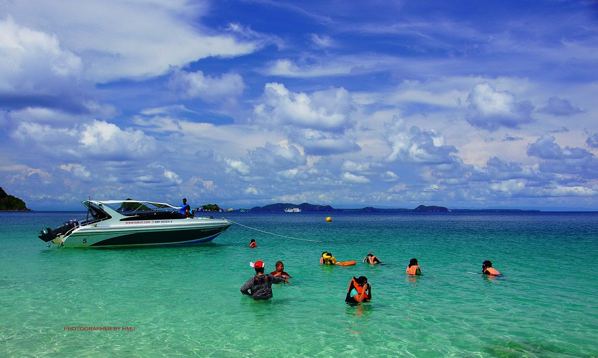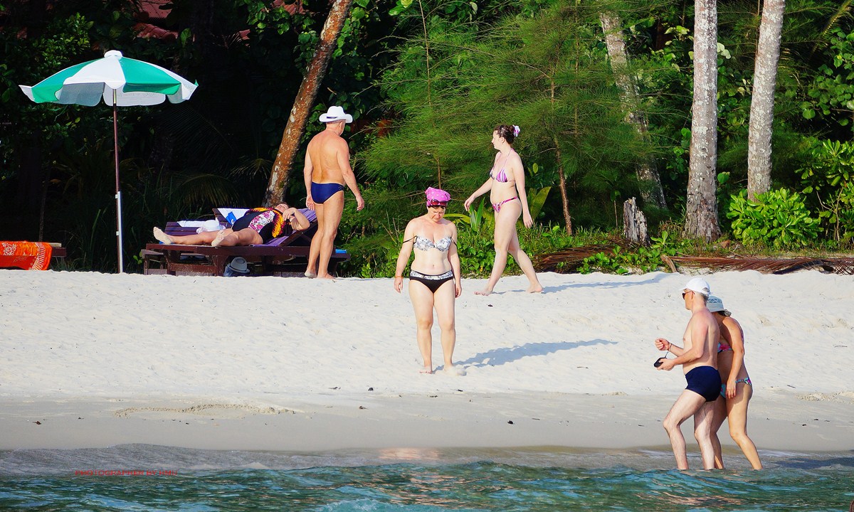 เมื่อกลับมาถึงหน้าหาด นักท่องเที่ยวชาวต่างชาติ กำลังลงน้ำกัน