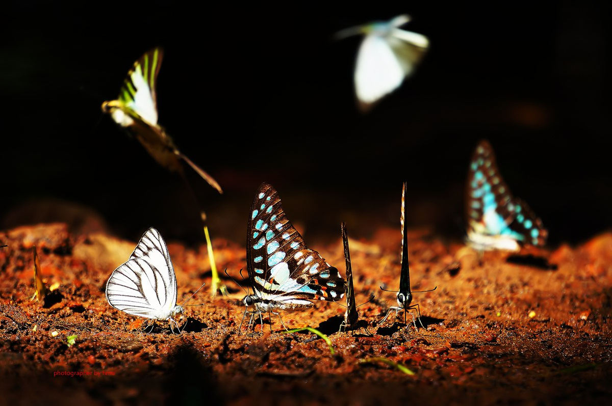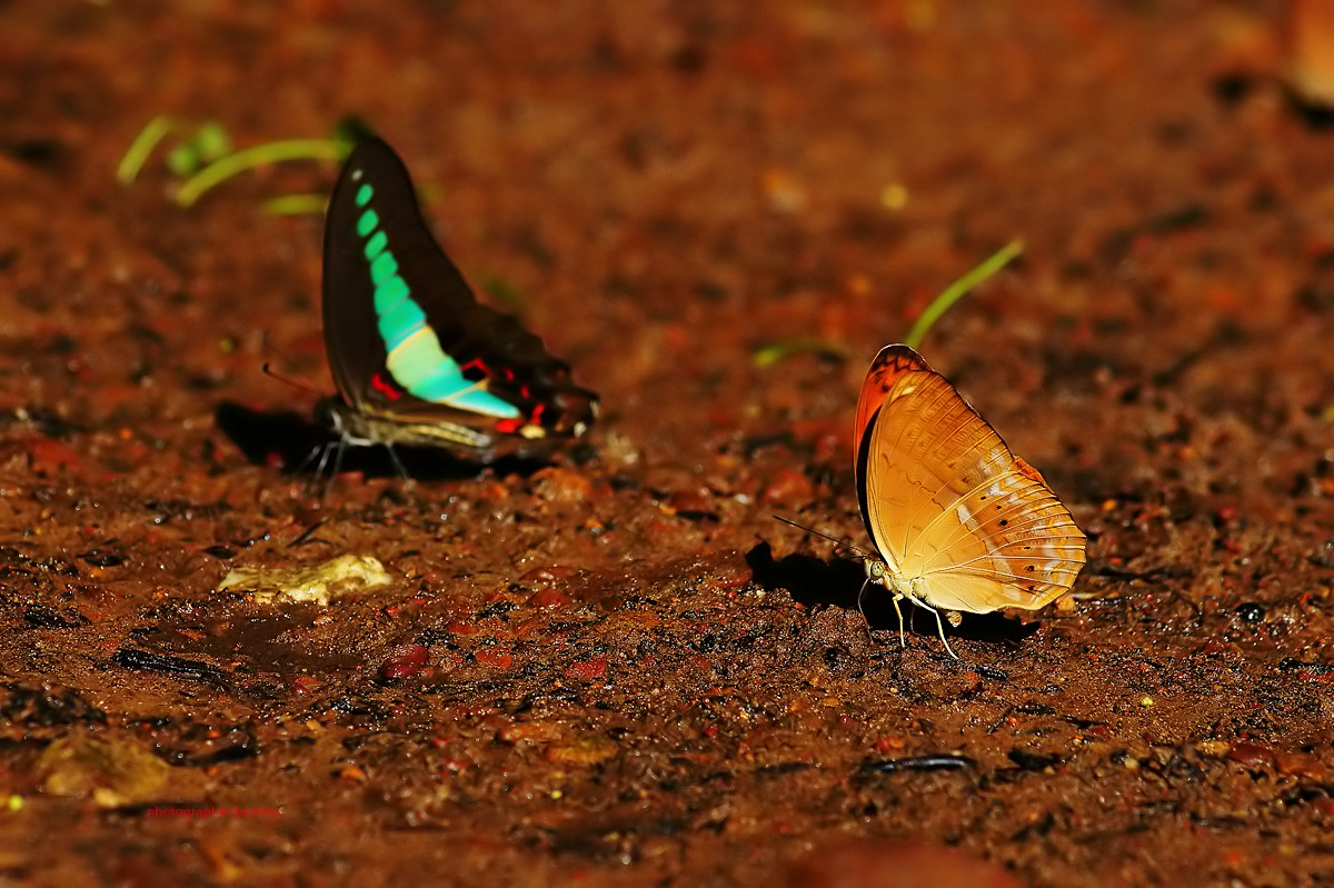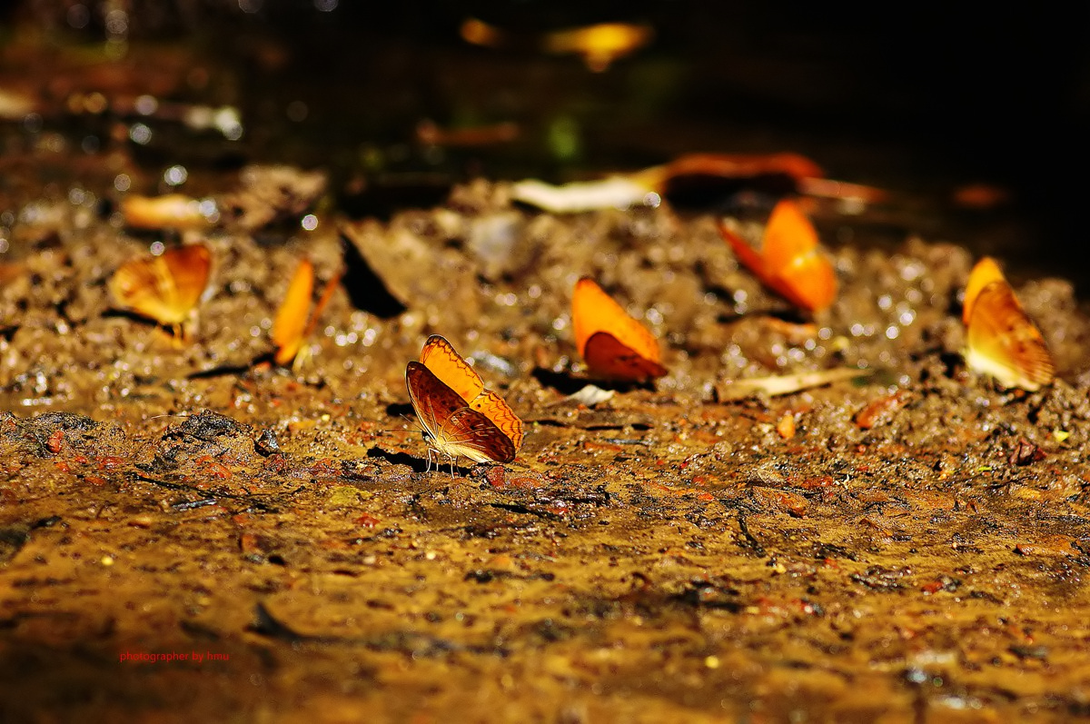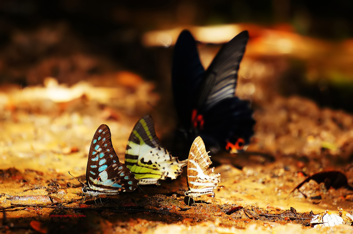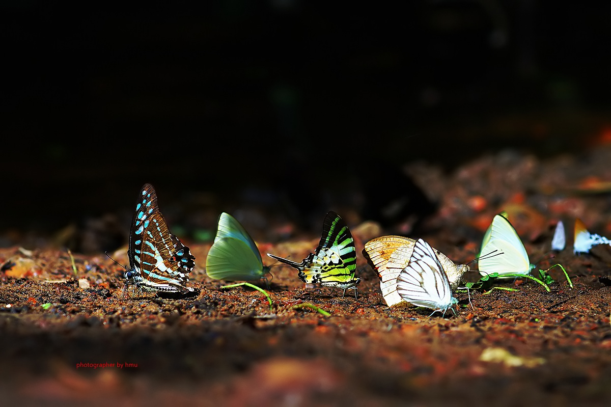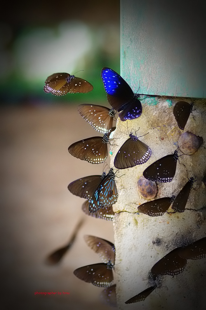 จุดกางเต้นท์ กม.20 บรรดาเหล่า ผีเสื้อจรกาหนอน ยี่โถ และ ผีเสื้อหนอนใบรักฟ้าใหญ่ กำลังตอมโคนเสาอยู่ คงมีสัตว์มาเยี่ยวใส่ รึคนเอาสารมาราดหว่า