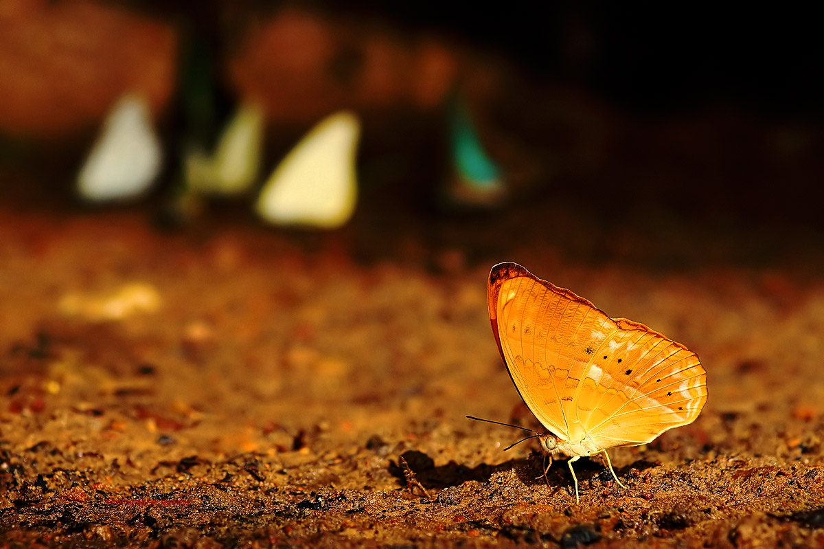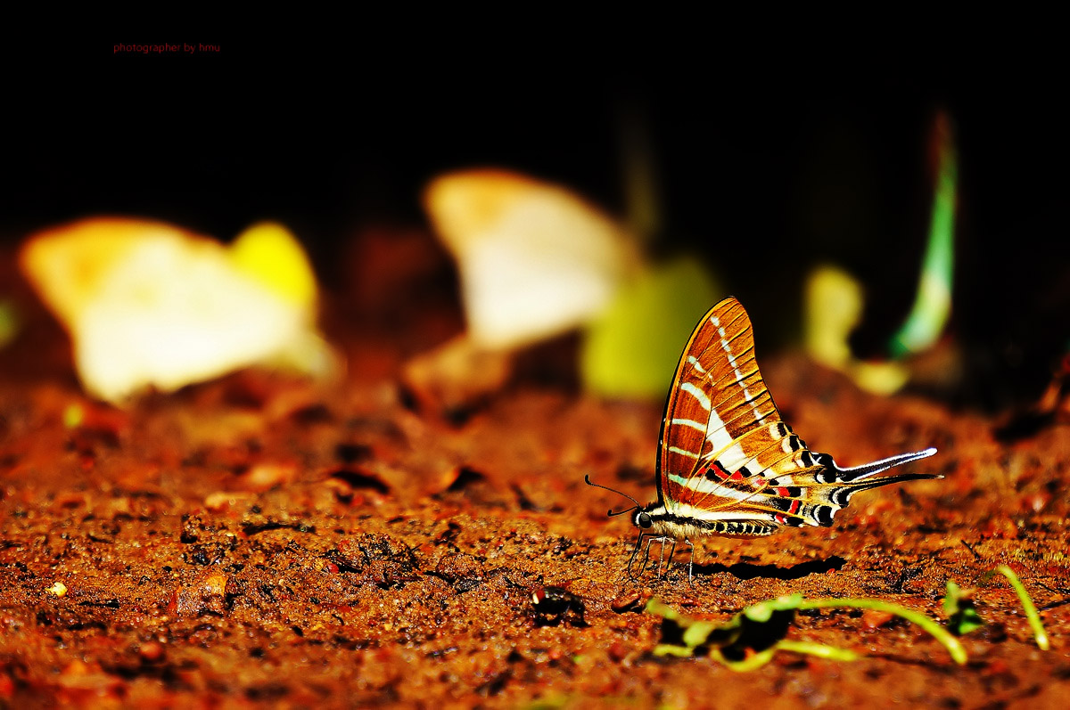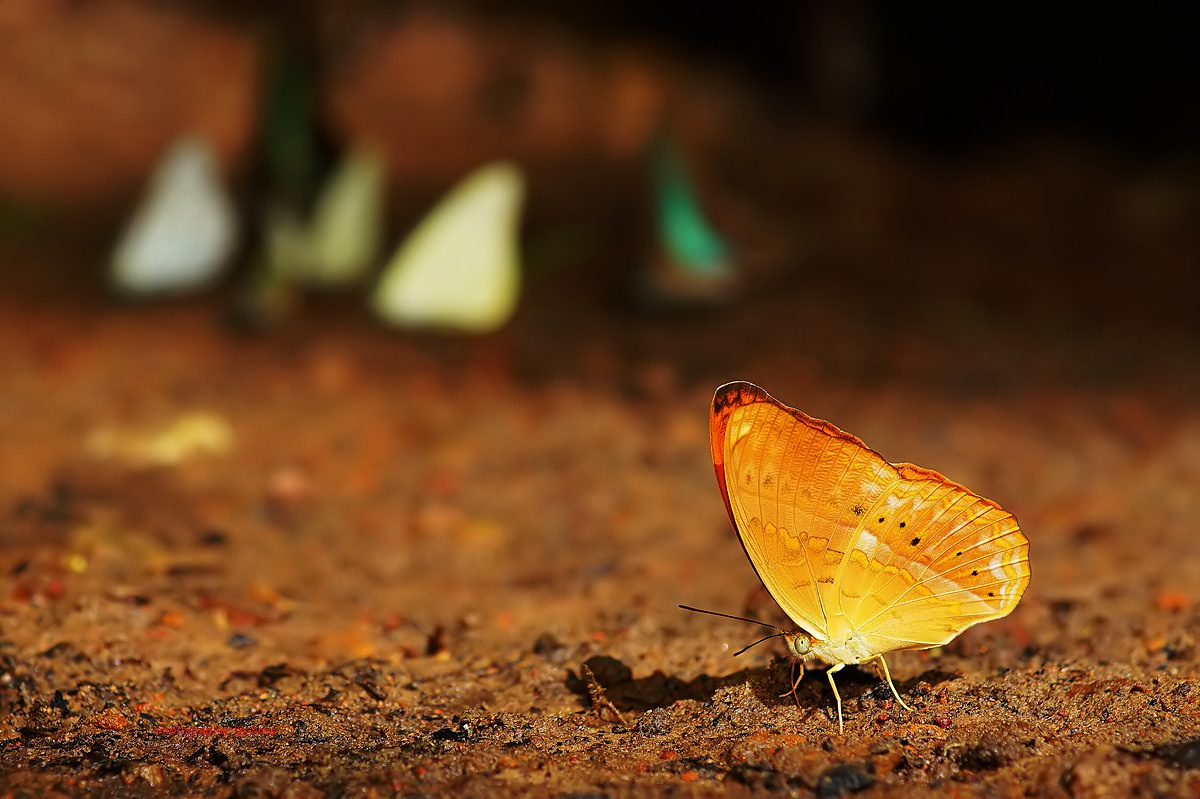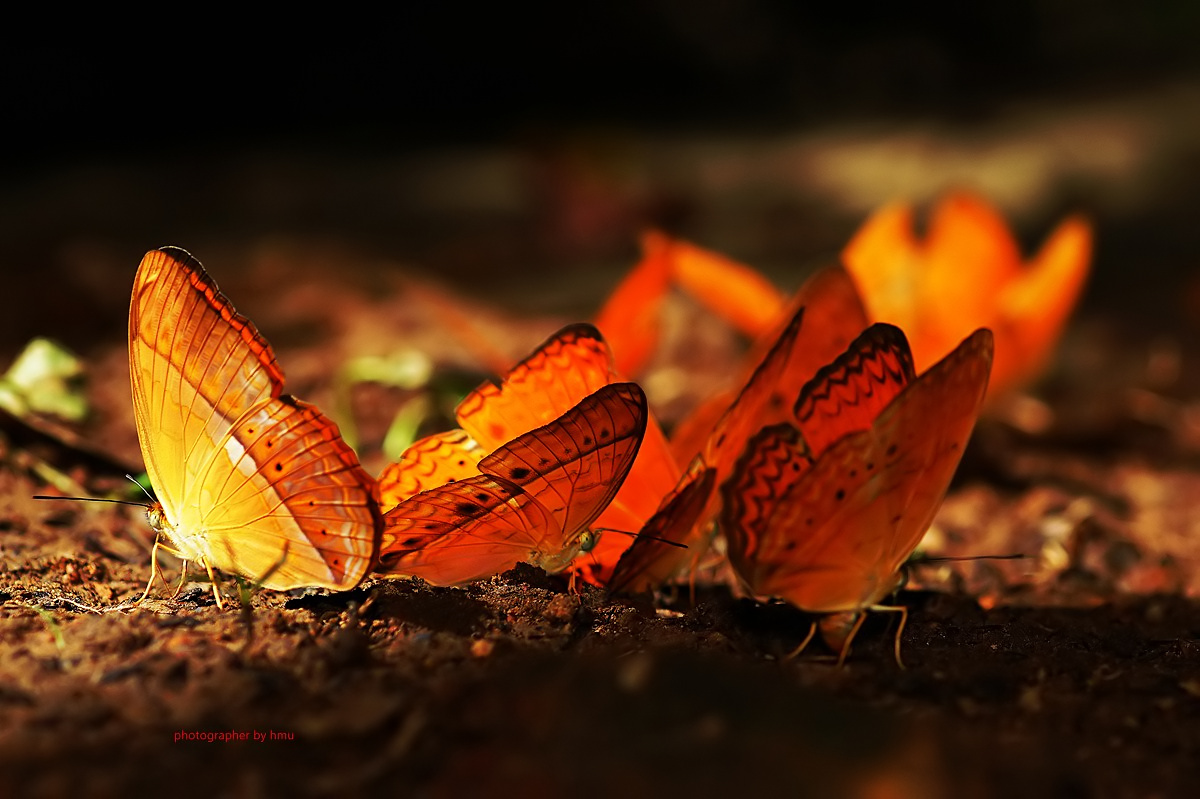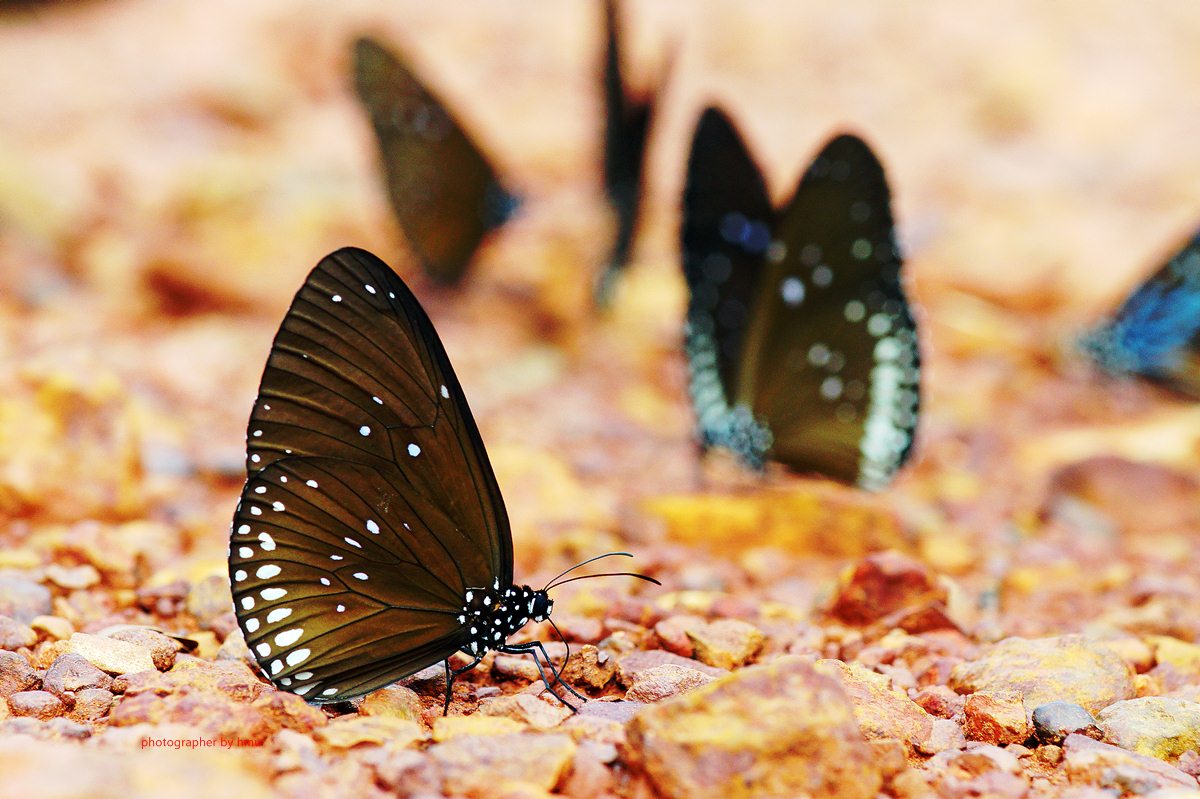 จุดกางเต้นท์ กม.20 บรรดาเหล่า ผีเสื้อจรกาหนอน ยี่โถ และ ผีเสื้อหนอนใบรักฟ้าใหญ่ กำลังตอมโคนเสาอยู่ คงมีสัตว์มาเยี่ยวใส่ รึคนเอาสารมาราดหว่า