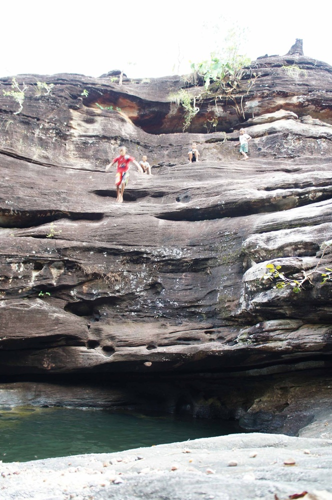 เห็นเด็กกลุ่มนี้เล่นน้ำอยู่เลยถามว่าทางนี้ไปทุ่งดอกไม้ได้บ่ แล้วก็คุยนู่นคุยนี่กันปเรื่อย อยู่ดีๆน้องเค้าก็บอกว่าเนี่ยกระโดดลงมาจากผานั้นได้น่ะเราก็ โหมันสูงน่ะบ่อน้ำนิดเดียวเองโดดได้เหรอ ว่าแล้วน้องก็จะโชว์ให้ชุดใหญ่กระโดกันตู้มต้าม อยากจะบอกว่าไม่ต้องโชว์หรอกไอ้น้องเอ้ยพี่เสียว