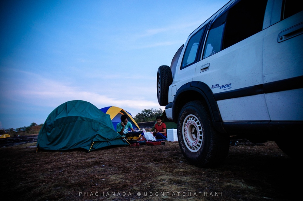 จัดการตั้งแคมป์กางเต้นท์ก่อกองไฟ ทำอาหารเตรียมดินเนอร์คืนนี้ เมนูพิเศษคืนนี้คือ ยำปลากระป๋อง