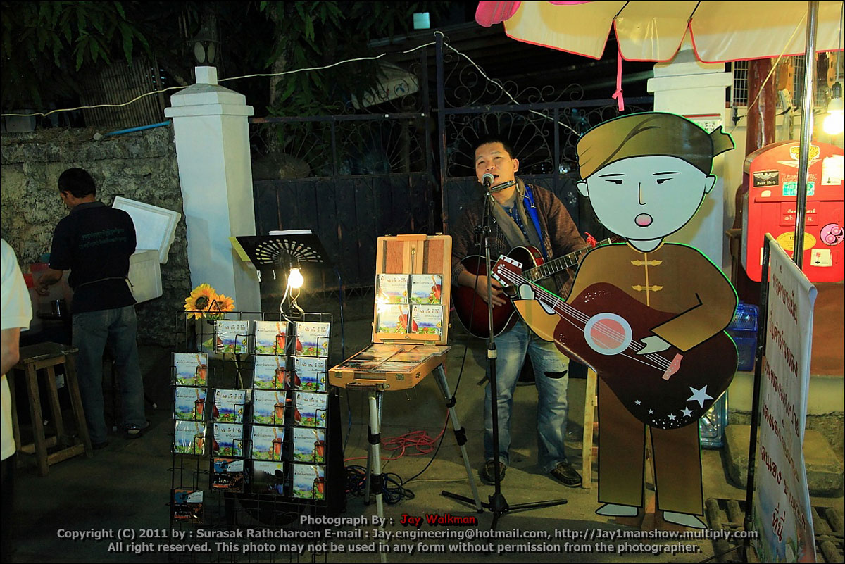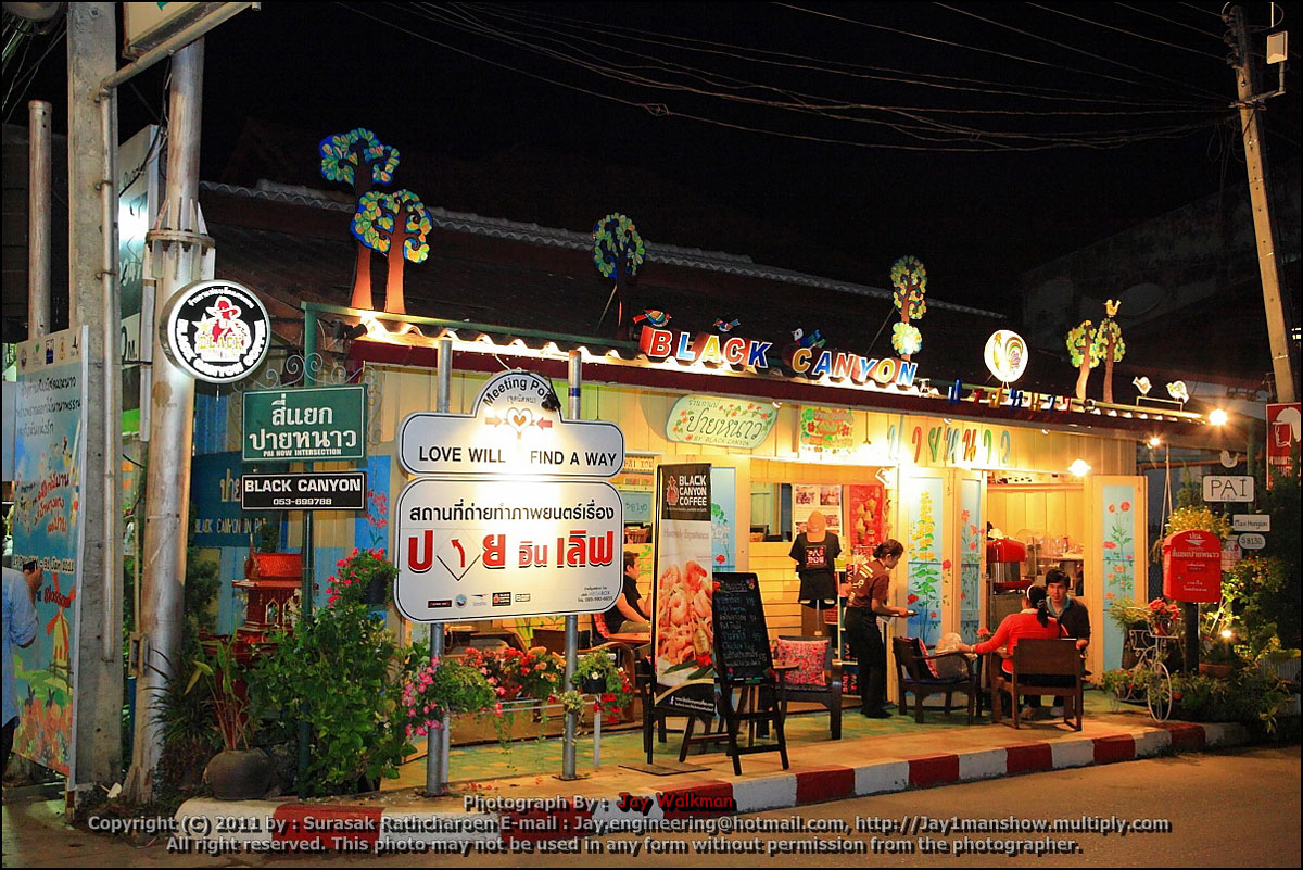 - กลางคืนเดินเล่นที่ "ถนนคนเดิน ที่ลานฅนเมือง เก็บภาพวัดกลางยามค่ำคืน นอนที่ ปาย