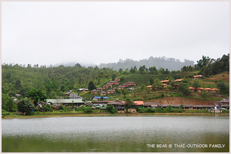 หมู่บ้านอยู่บนเนินเขา รอบๆอ่างเก็บน้ำ บรรยากาศดีจริงๆ