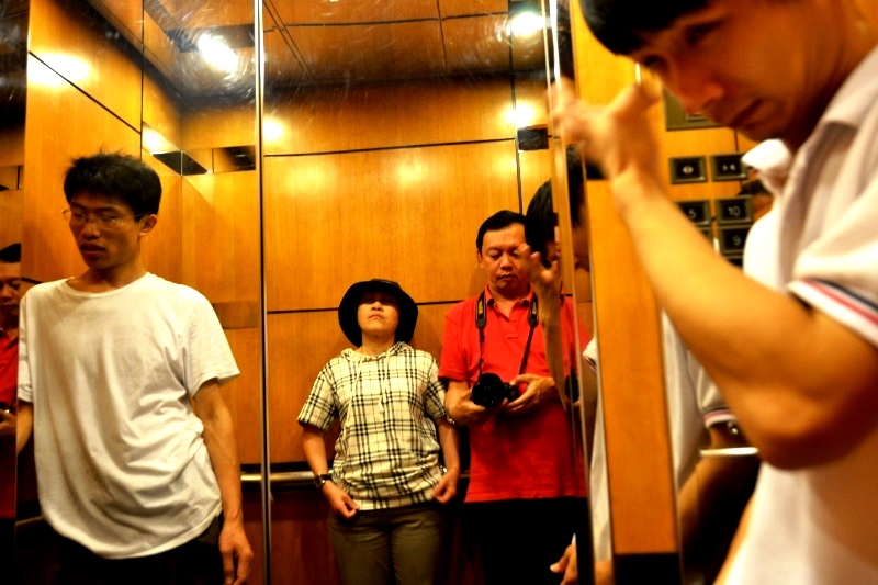เดินมาแทรกคิวเข้าที่ปากประตู ไม่แยแสคำขอร้องของเจ้าหน้าที่ ผมหน้าชา