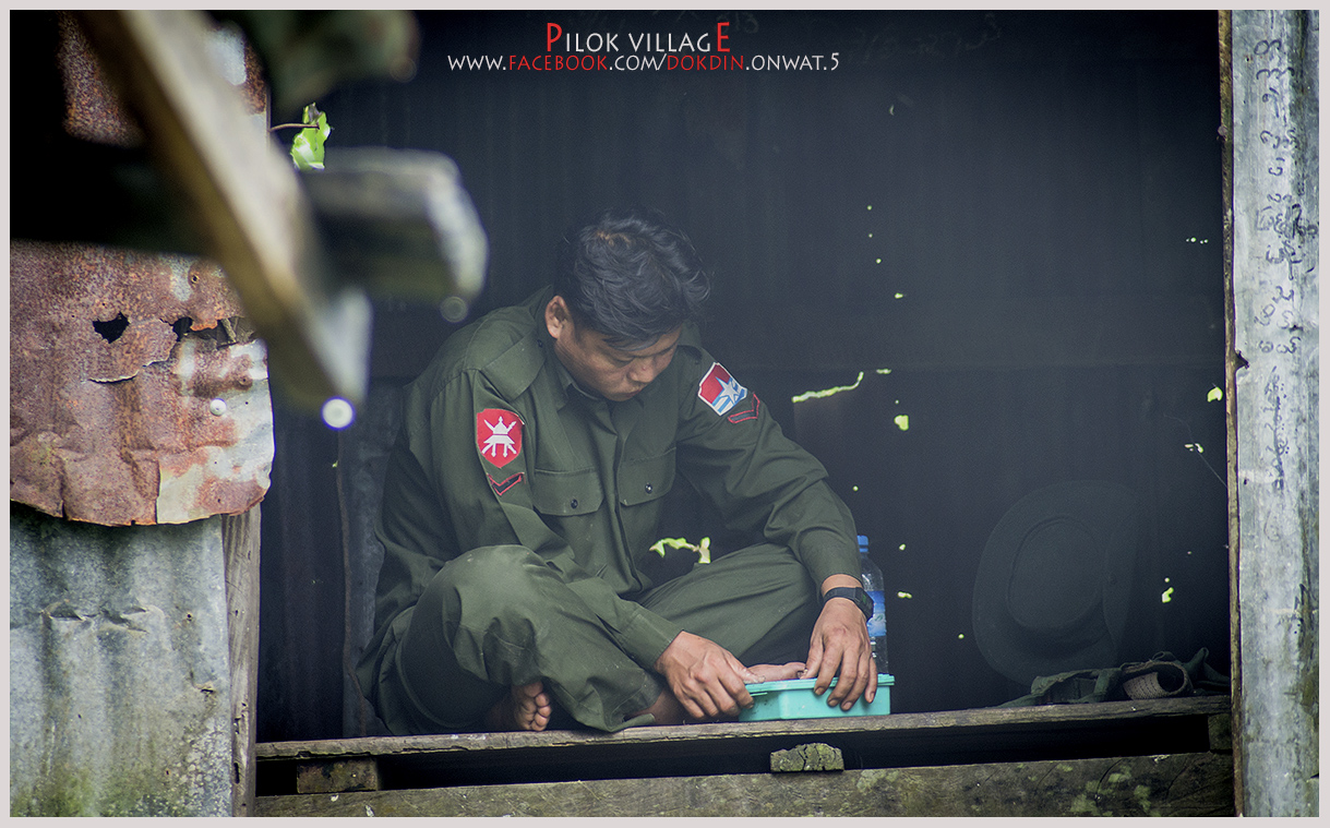 ทหารประเทศเพื่อนบ้านกำลังปฏิบัติงานเข้าเวรเฝ้าระวังชายแดนอยู่