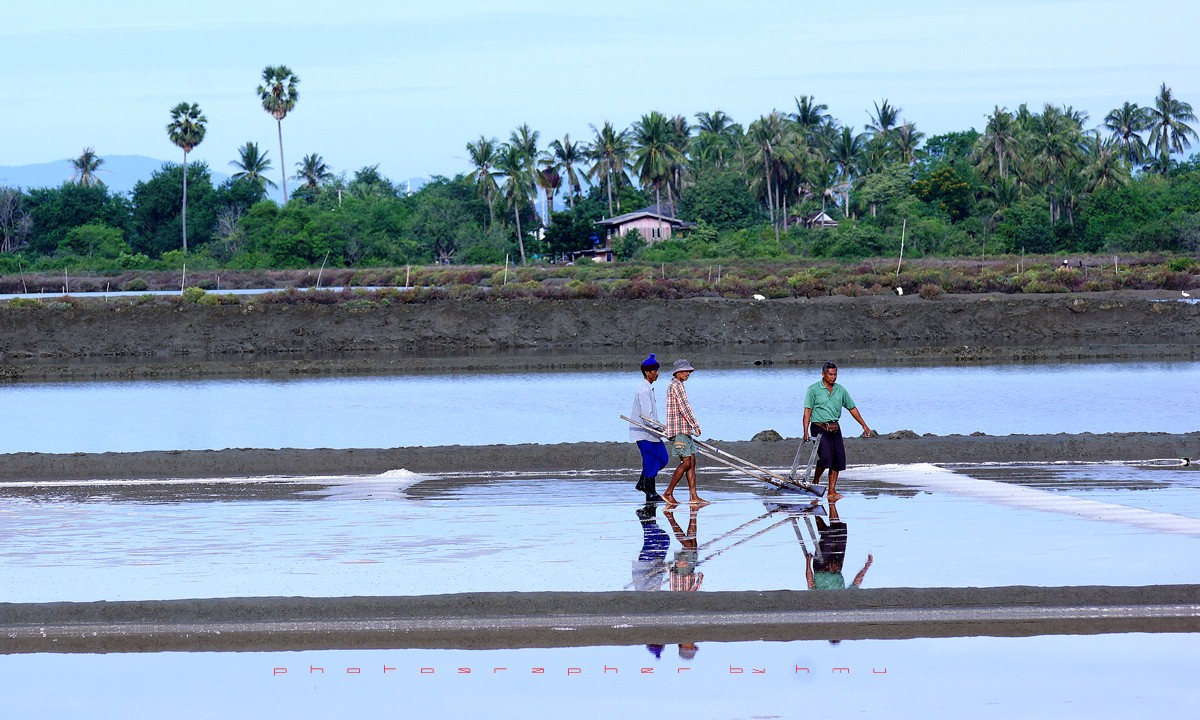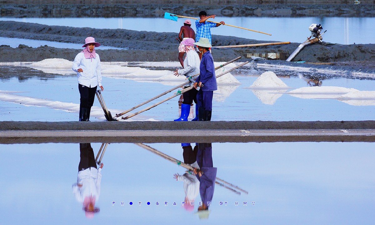 คนงานเริ่มออกมาเก็บเกลือกันแล้ว..