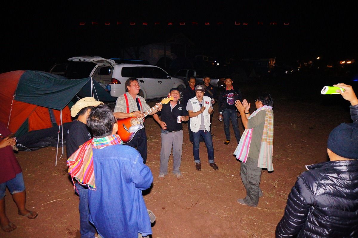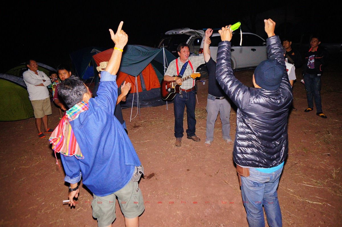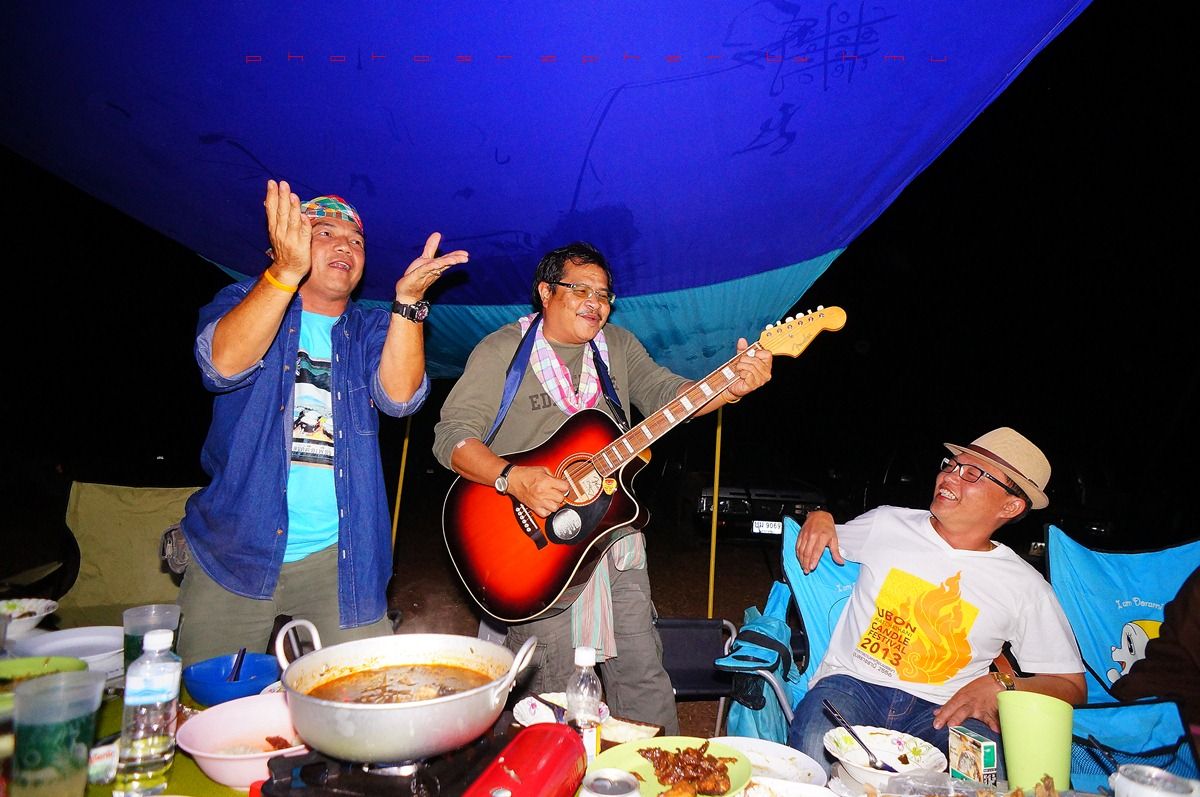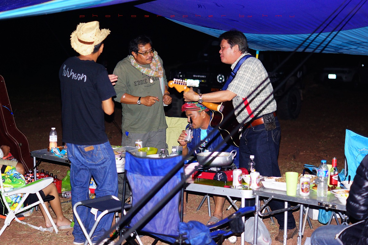 กลับมาที่เพิงแคมป์ มีสมาชิกจะเป่ากีต้าร์โชว์