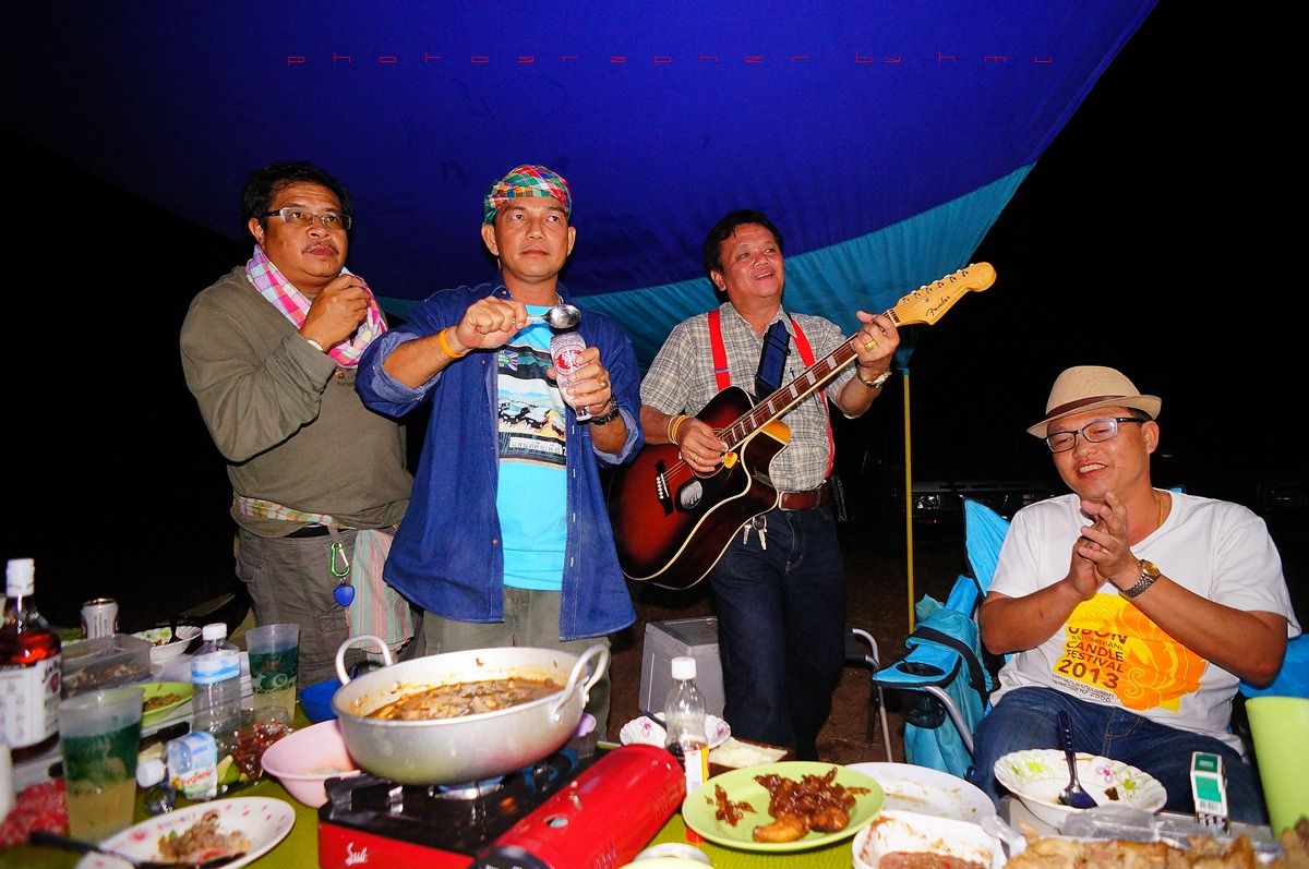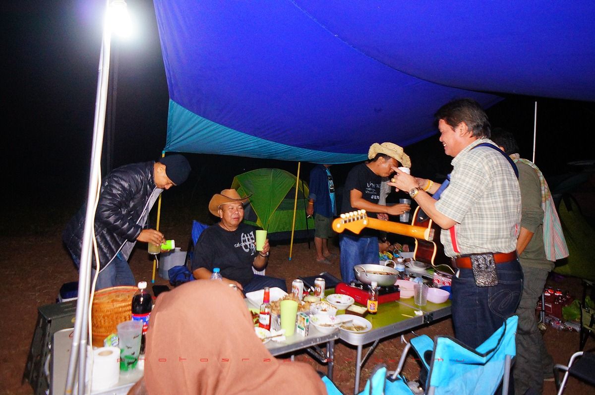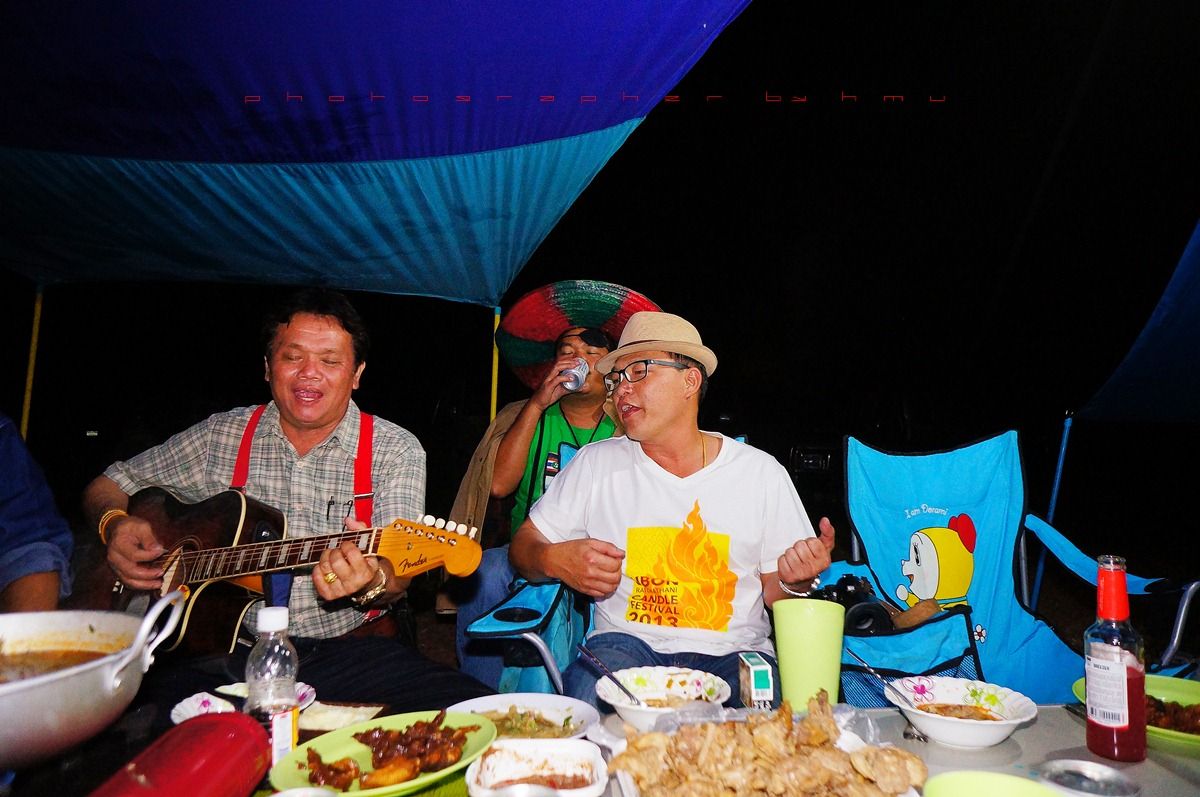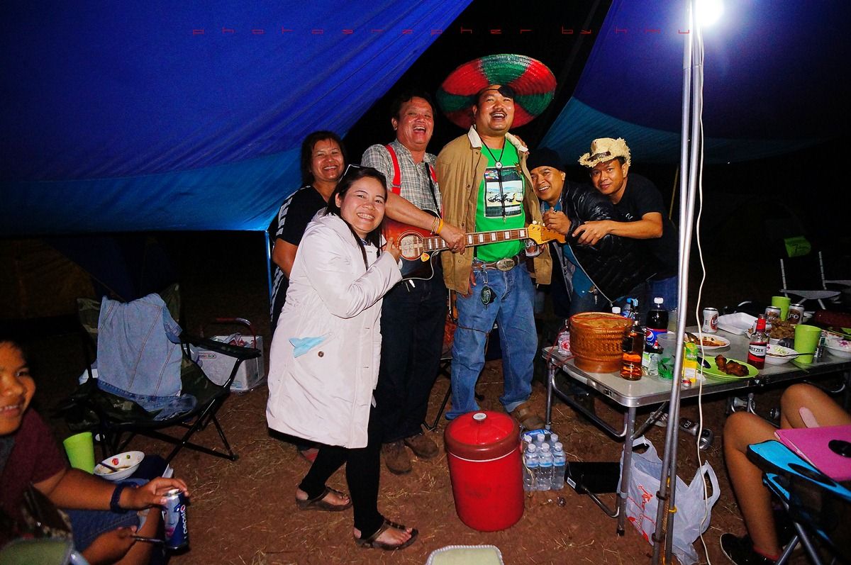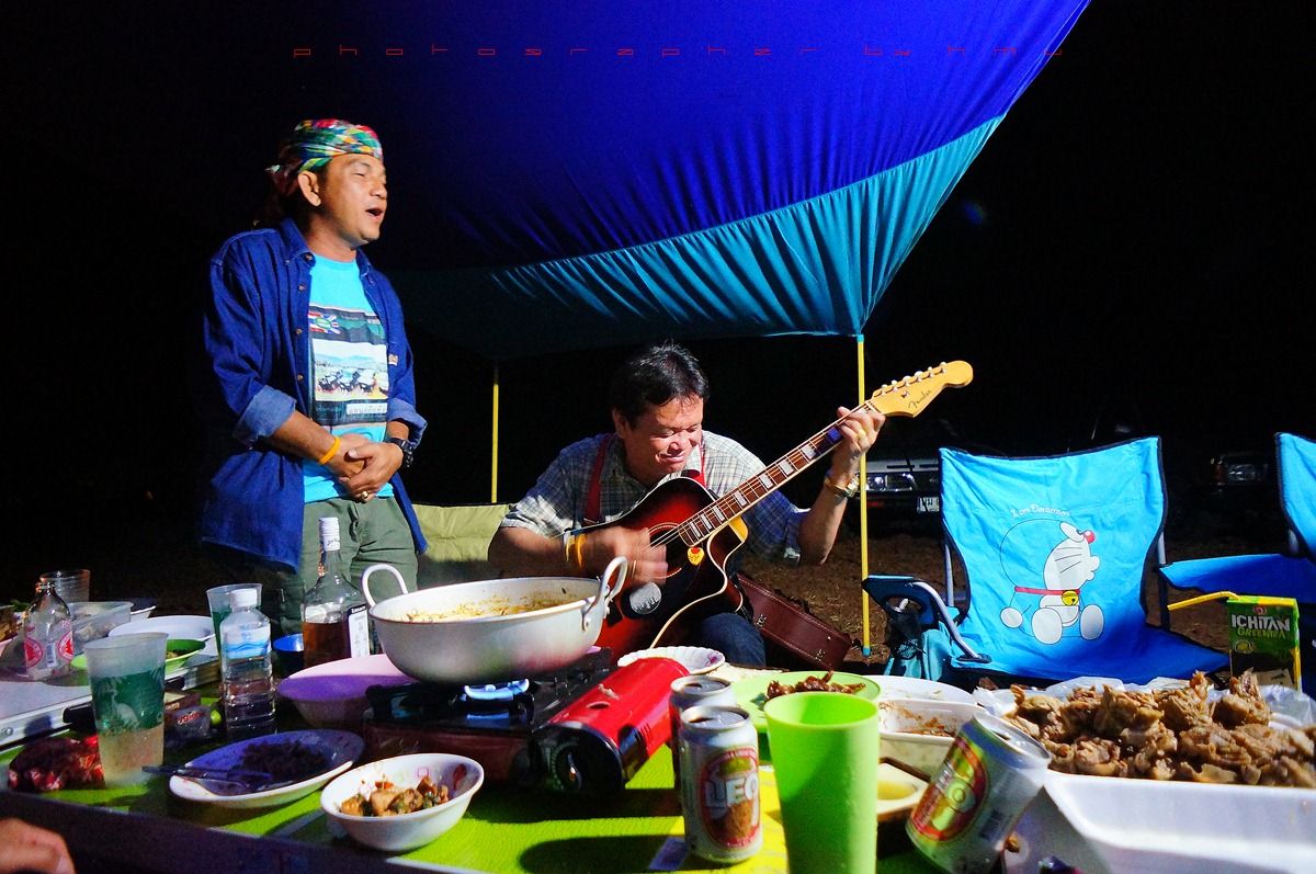 กลับมาที่เพิงแคมป์ มีสมาชิกจะเป่ากีต้าร์โชว์