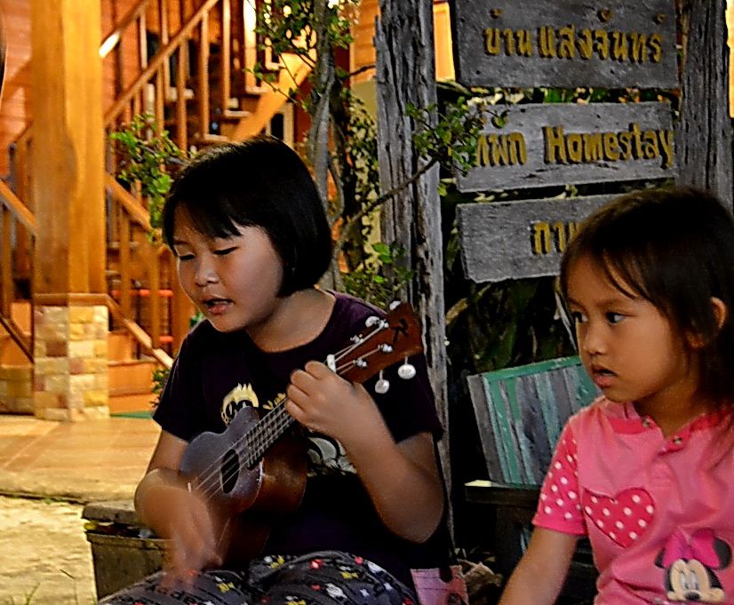 สองพี่น้องร้องประสาน ผ่านเสียง อูคูเลเล่ น่ารัก แต้มสีสันให้ราตรีนั้นยิ่งนัก