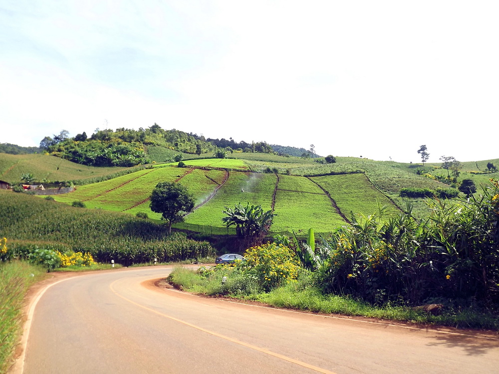 หลังจากนั้น ผมก็เก็บของ แล้วก็เช็คเอ๊าท์ออกมา เที่ยง ๆ นิดหน่อย ลงมาก็เจอโค้งนี้เต็ม ๆ เมื่อวานเนื่องจากมามืดแล้่วจึงไม่เห็นตรงนี้ งามจริง ๆ กับวิถีชนบทชาวเขา