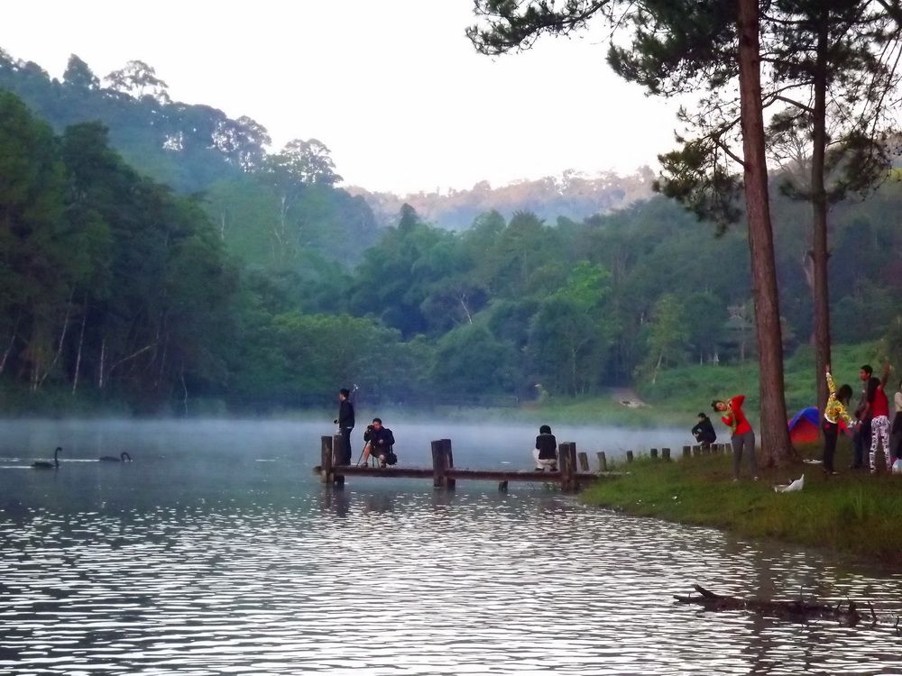 อาบน้ำ กินข้าวกลางวันที่ผาบ่อง ประมาณ บ่าย 2 โมง ก็ออกเดินทางไปปางอุ๋ง ถึงปางอุ๋งประมาณ 5 โมงเย็น คืนนี้นอนปางอุ๋ง เป็นคืนที่ 2 พรุ่งนี้เช้า มาชม ไอหมอกทะเลสาบกัน