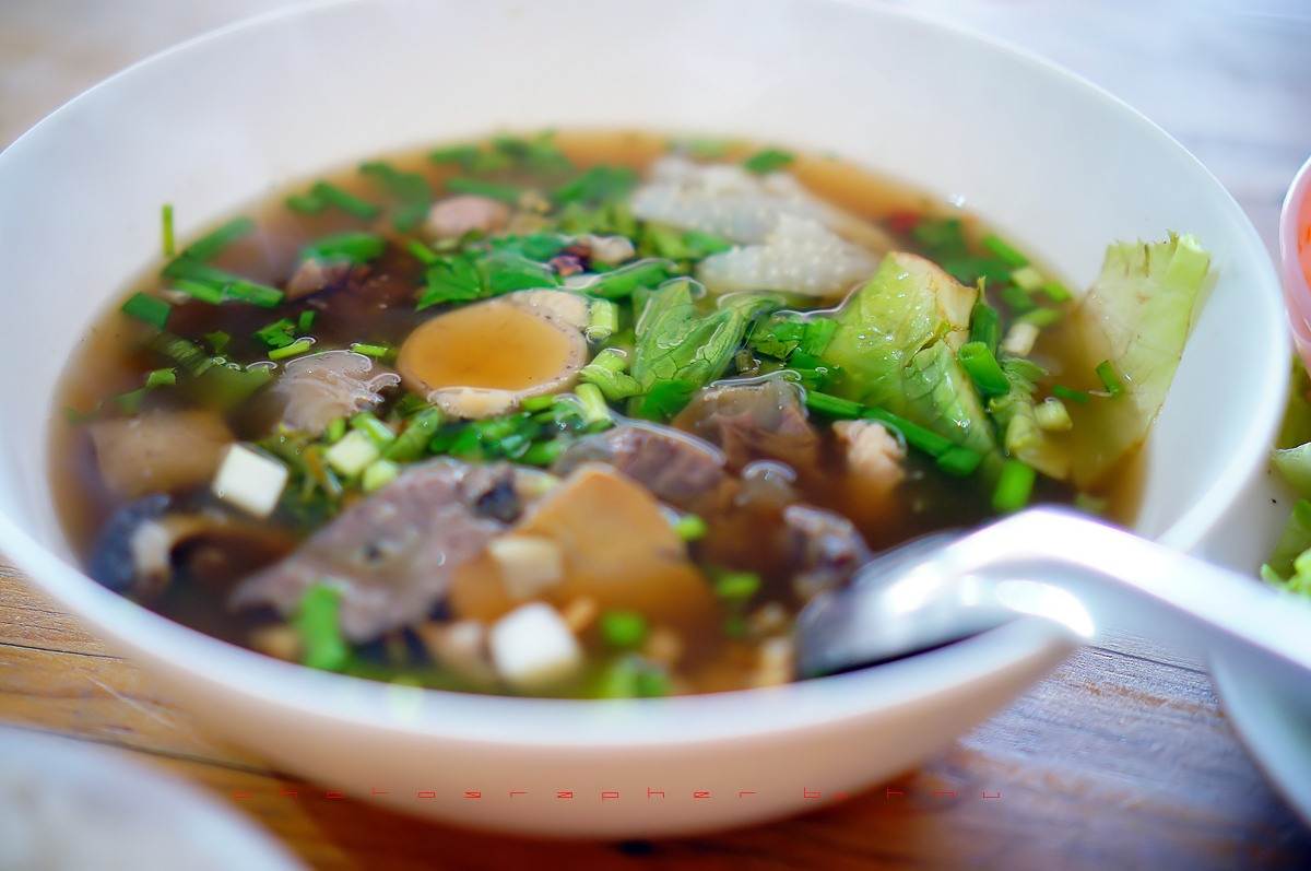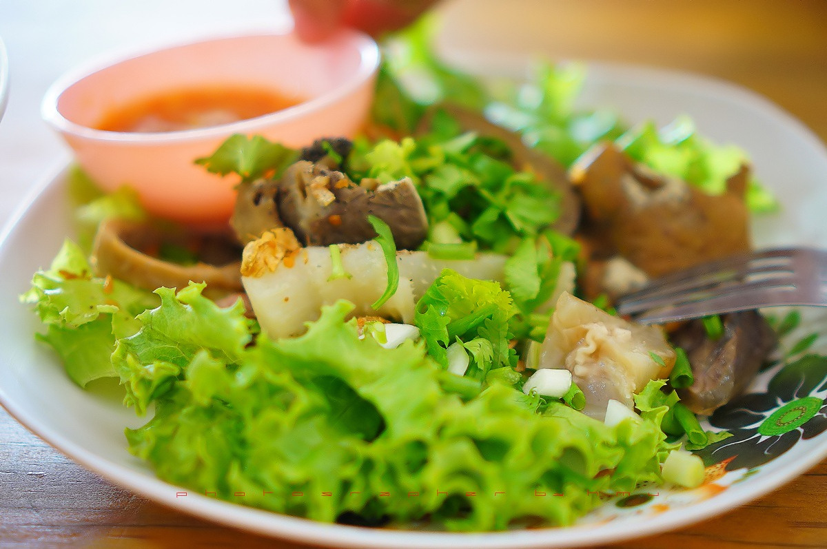 กับลวกจิ้ม ข้าวสองถ้วยพุงกาง อร่อยมาก ส่วนแหม่มกินก๋วยเตี๋ยวหมู