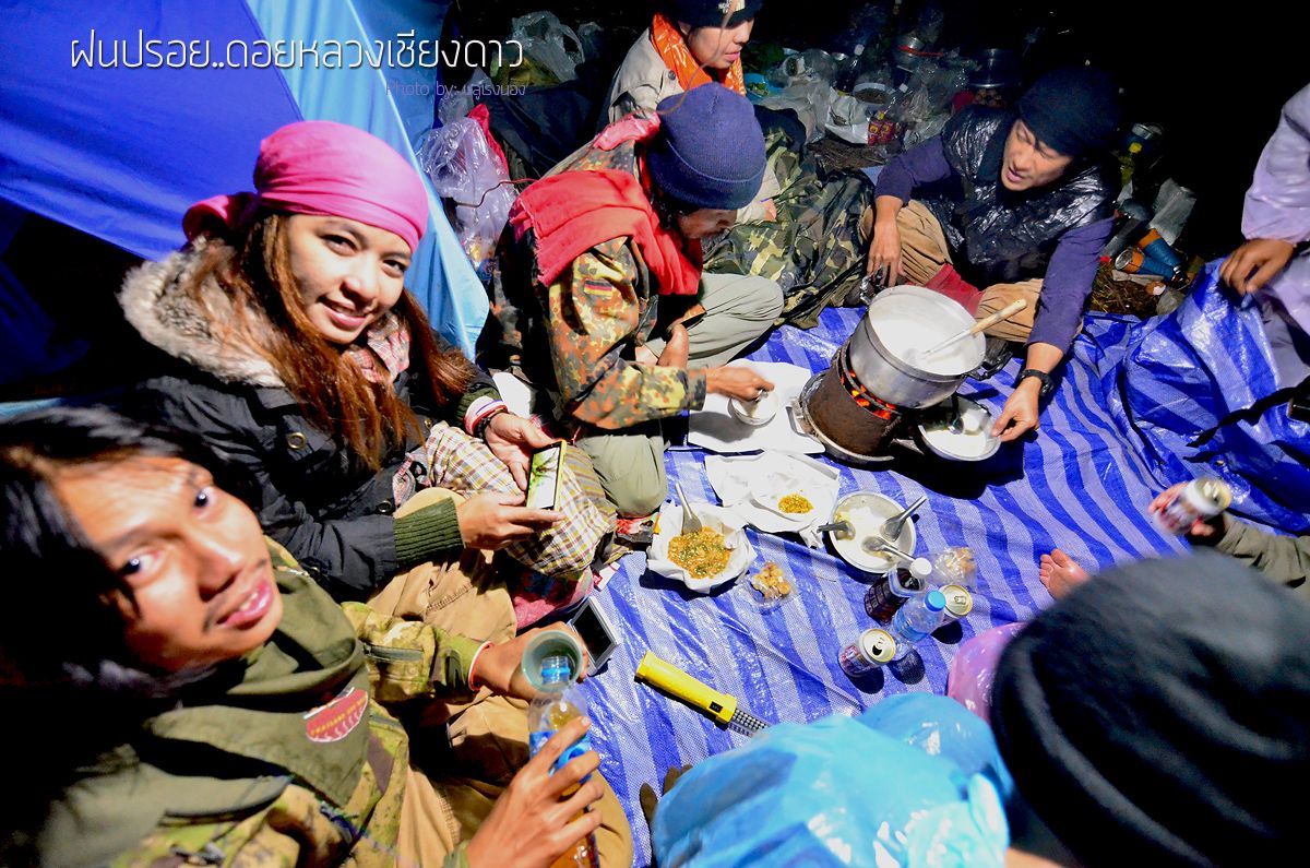 กลับลงมาแคมป์ ได้แต่มองยอดสูงสุดเชียงดาวด้วยตาละห้อย...อากาศไม่เป็นใจให้เราได้ไปเก็บพระอาทิตย์ตกดินเสียแล้ว...ฟ้าปิดจนมืดค่ำ