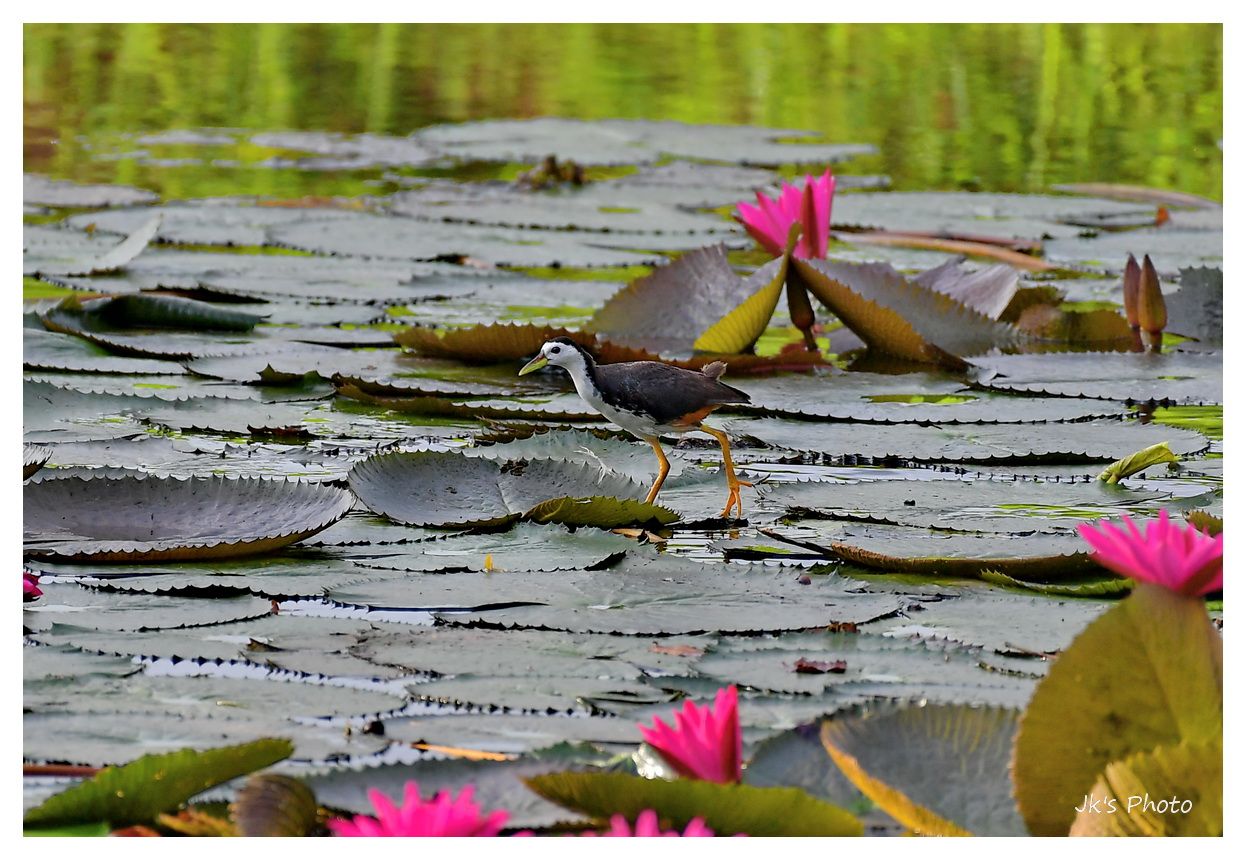 พนักงานเดินตรวจตราความสะอาดของสระบัว..