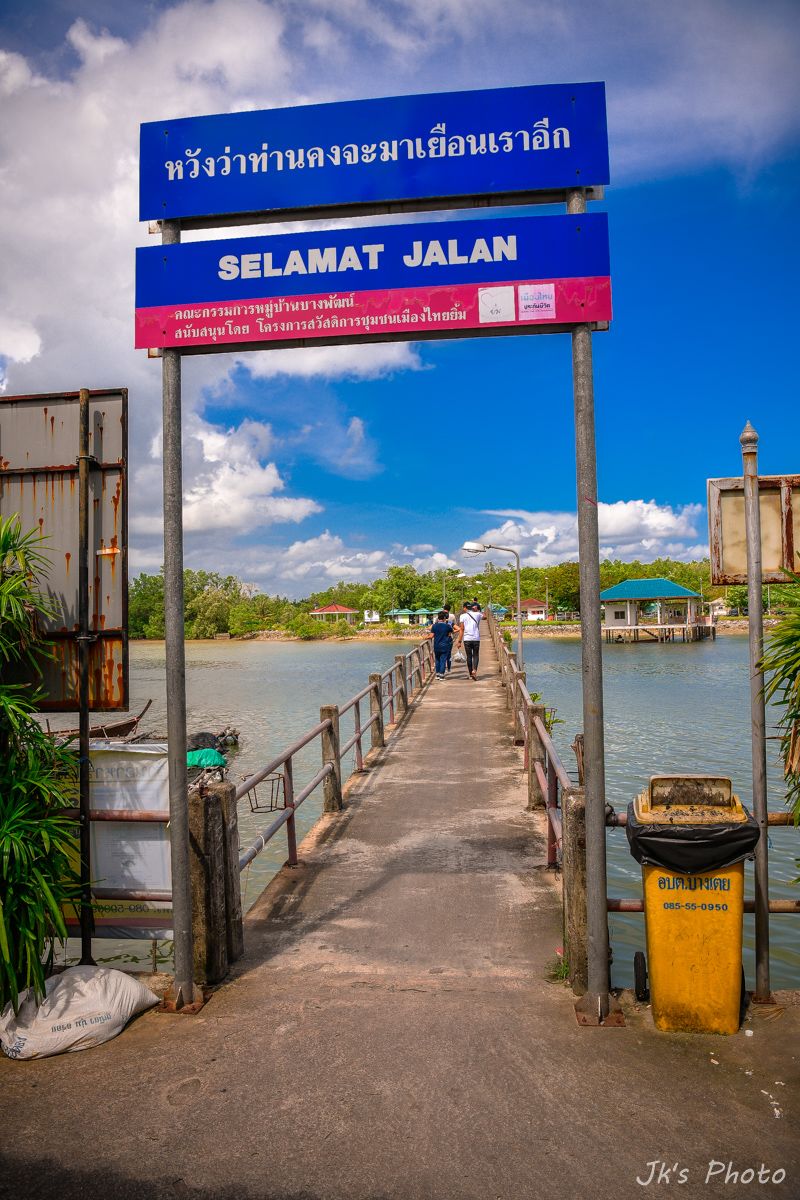 จุดมุ่งหมายเราไม่ใช่ชายหาดแต่เป็นมื้อกลางวันที่ บ้านบางพัฒน์ (จริงๆน่าจะเรียกว่าเกาะมากกว่าอะนะ) เราค้องเดินข้ามสะพานปูนประมาณ เกือบ 100 เมตร ..สมัยก่อนคงต้องนั่งเรือข้ามไปอะนะ..