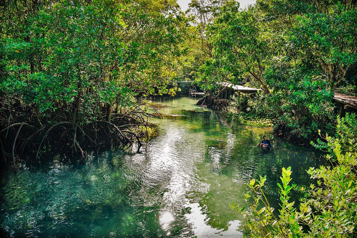 แวะที่ ท่าปอมสองน้ำ จ.กระบี่ เป็นป่าพรุ ที่สวยงามร่มเย็นแห่งหนึ่งอะครับ..เสียค่าเข้าชม 20 บาท ..