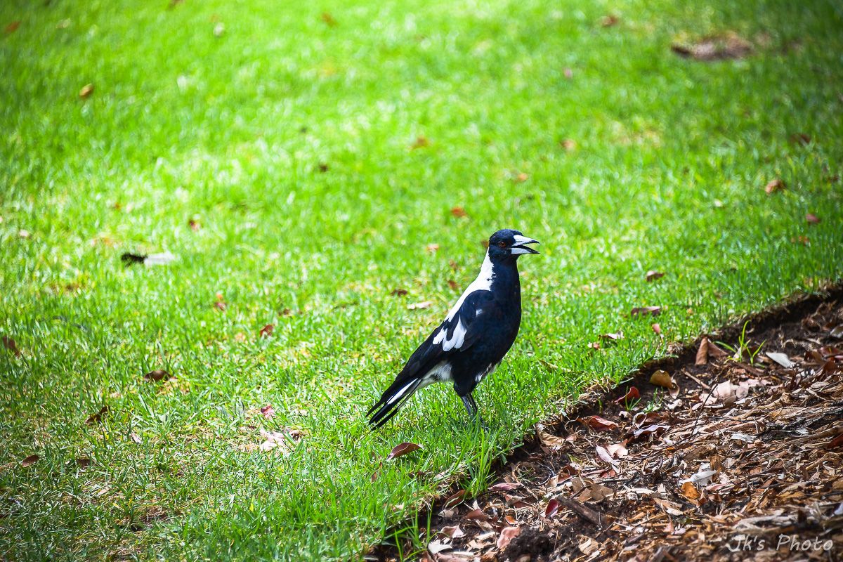 นกนี้ก็แปลกขนาดเท่าอีกาบ้านเราแซมด้วยสีขาว เสียงร้องแปลกๆ เหมือนคนร้องเพลงผิดคีย์อะ