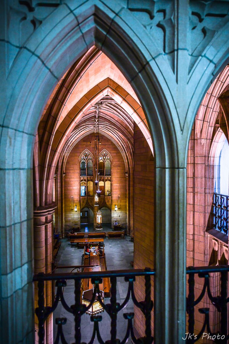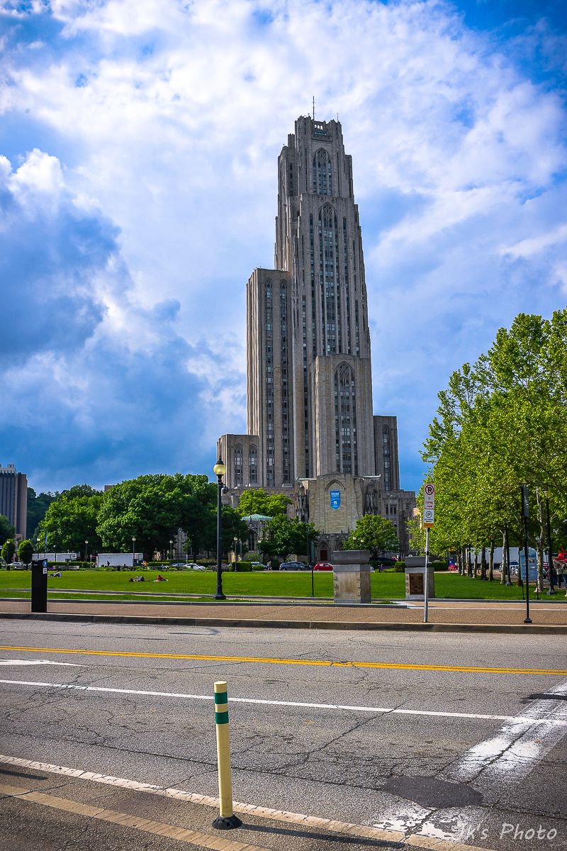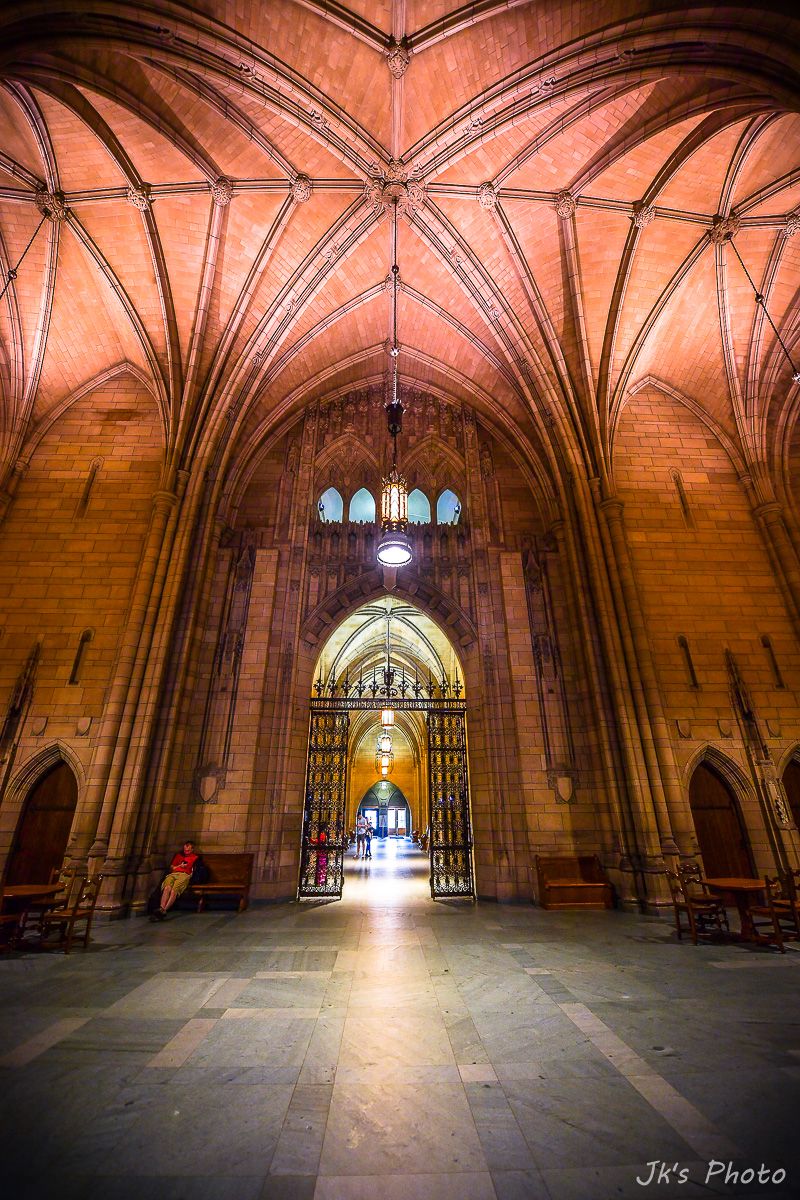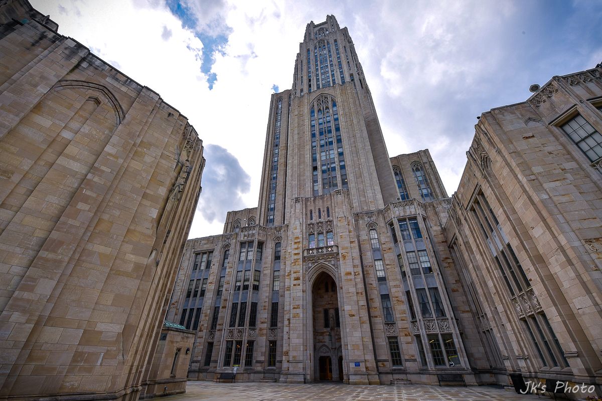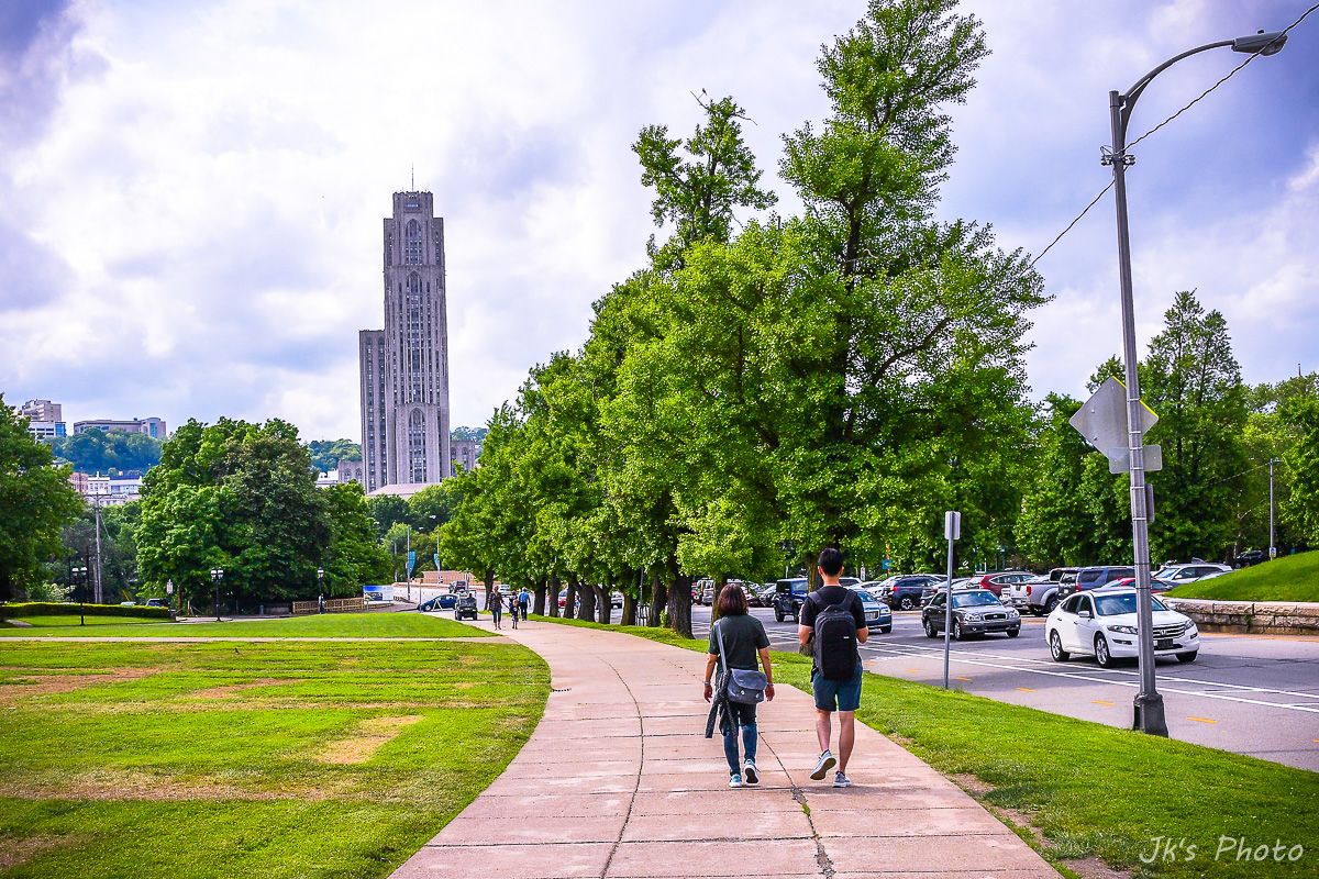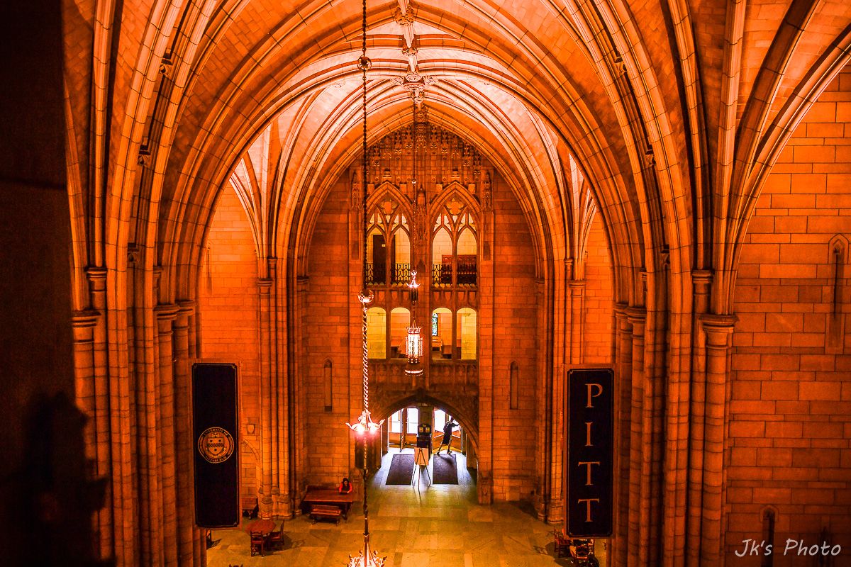 เดินกลับ รร ผ่าน cathedral of learning (University of Pittsburgh) ตั้งสวยอยู่ตรงหน้า ถามลูกว่าเข้าไปดูด้านในได้อะเปล่า ลูกว่าได้เลยแวะเข้าไปชม..