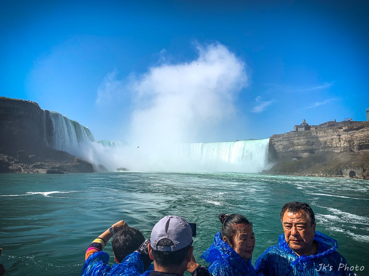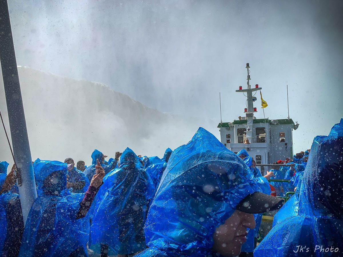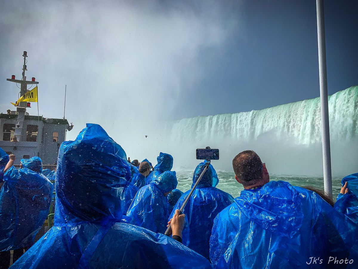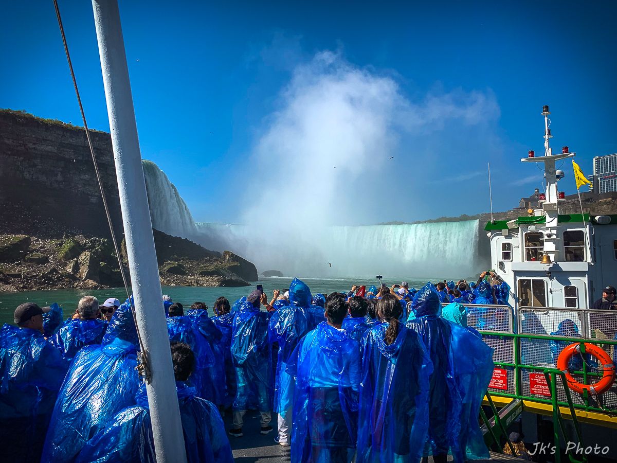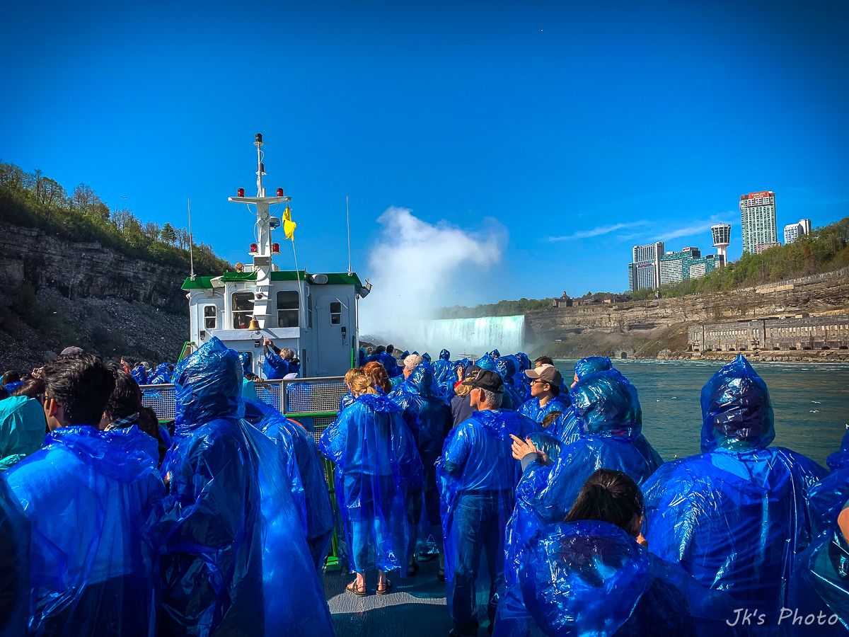 เรือที่เห็นอยู่ด้านล่าง นทท ใส่เสื้อกันฝนสีแดง นั่นเป็นเรือท่องเที่ยวของแคนนาดาอะนะ..