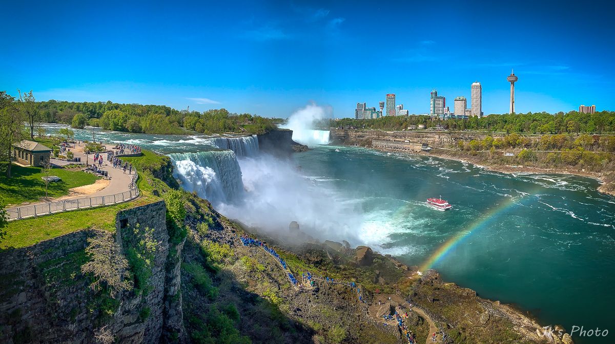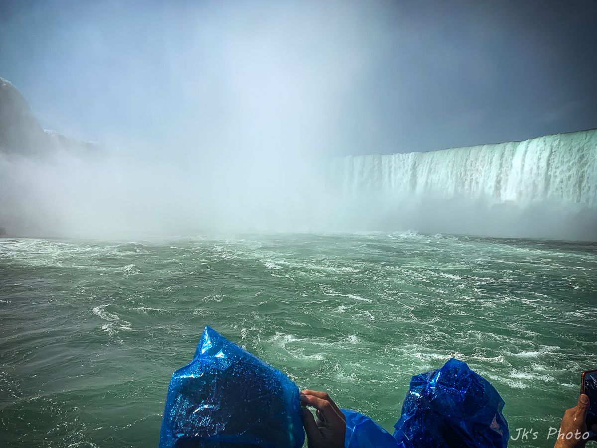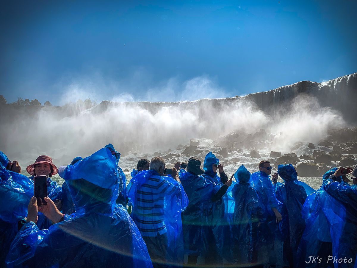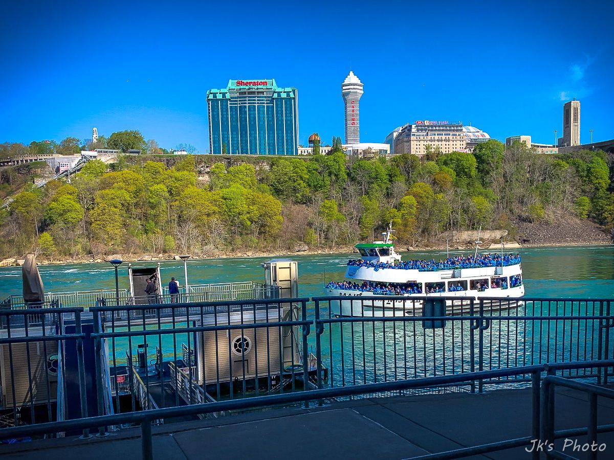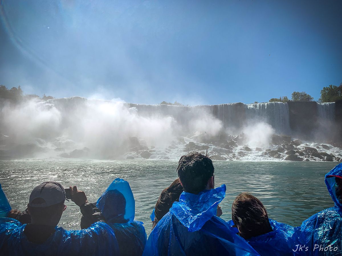 เรือที่เห็นอยู่ด้านล่าง นทท ใส่เสื้อกันฝนสีแดง นั่นเป็นเรือท่องเที่ยวของแคนนาดาอะนะ..