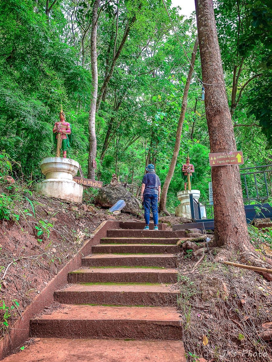 ทริปนี้ขึ้นไปไม่ถึงอะ เส้นทางหลักกำลังซ่อมปรับปรุงอยู่ ทางวัดเลยทำทางเบี่ยงออ้มขึ้นอีกทาง ทางเส้นนั้นเมื่อคืนฝนตกพื้นดินเลยแฉะเละ ช่วง 50 เมตรสุดท้าย สูงชันและความเสี่ยงที่จะลื่นล้มได้ เลยตัดสินใจไม่ขึ้นไปดีกว่าอะ ....