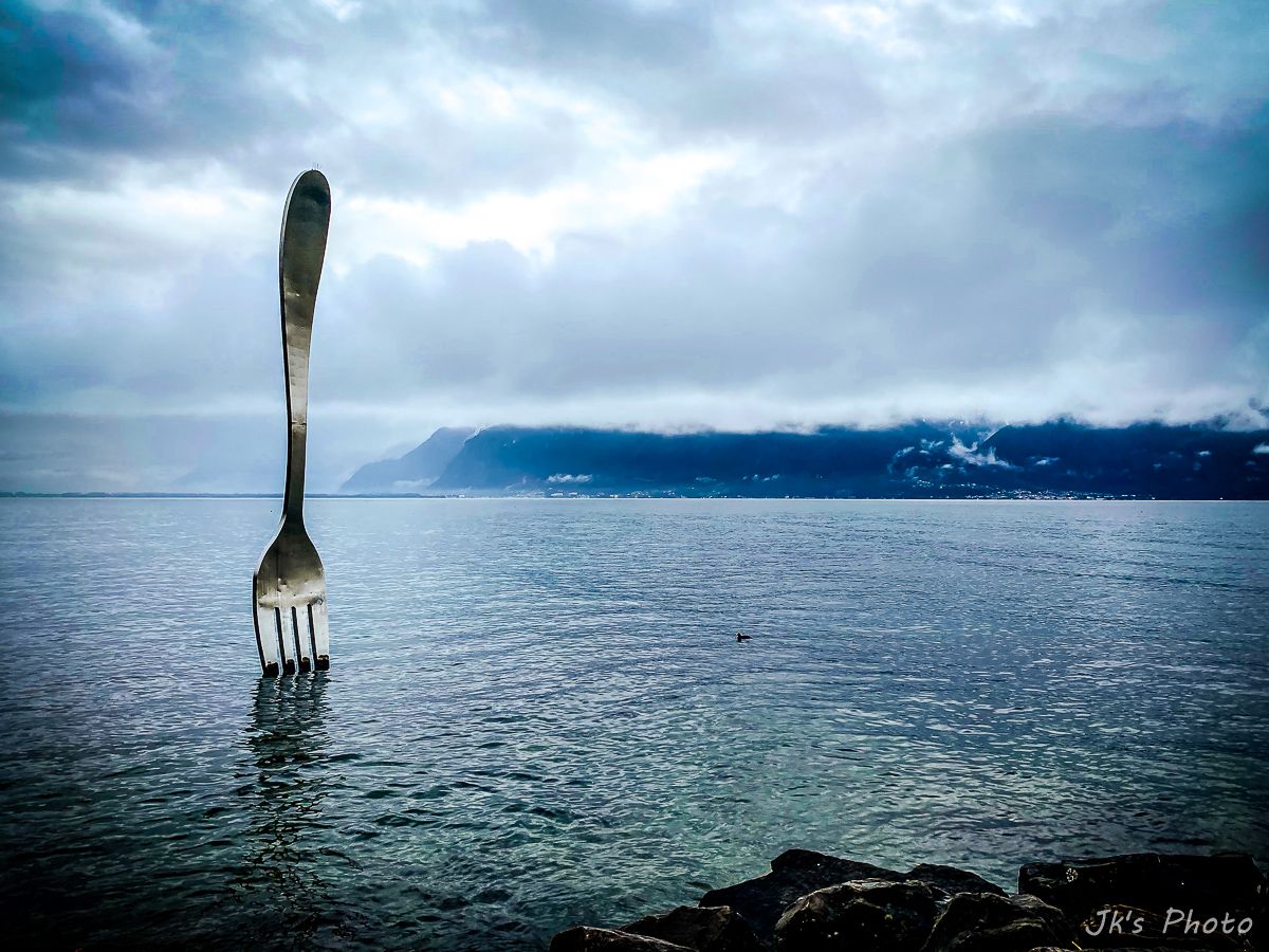 เดินทางกันต่อไปเมือง vevey ณ เมืองนี้ มีพิพิธภัณฑ์อาหารของเนสเล่ย์ (nestle) บริษัทยักษ์ใหญ่ของโลกด้านอาหาร/เครื่องดื่ม (ไม่ได้เข้าไปดูเพราะวันนี้พิพิธภัฑ์เขาปิดอะ) เราไปถ่ายรูปกะซ่อมยักษ์(หน้าพิพิธภัณฑ์ฯ) เป็นที่ระลึก