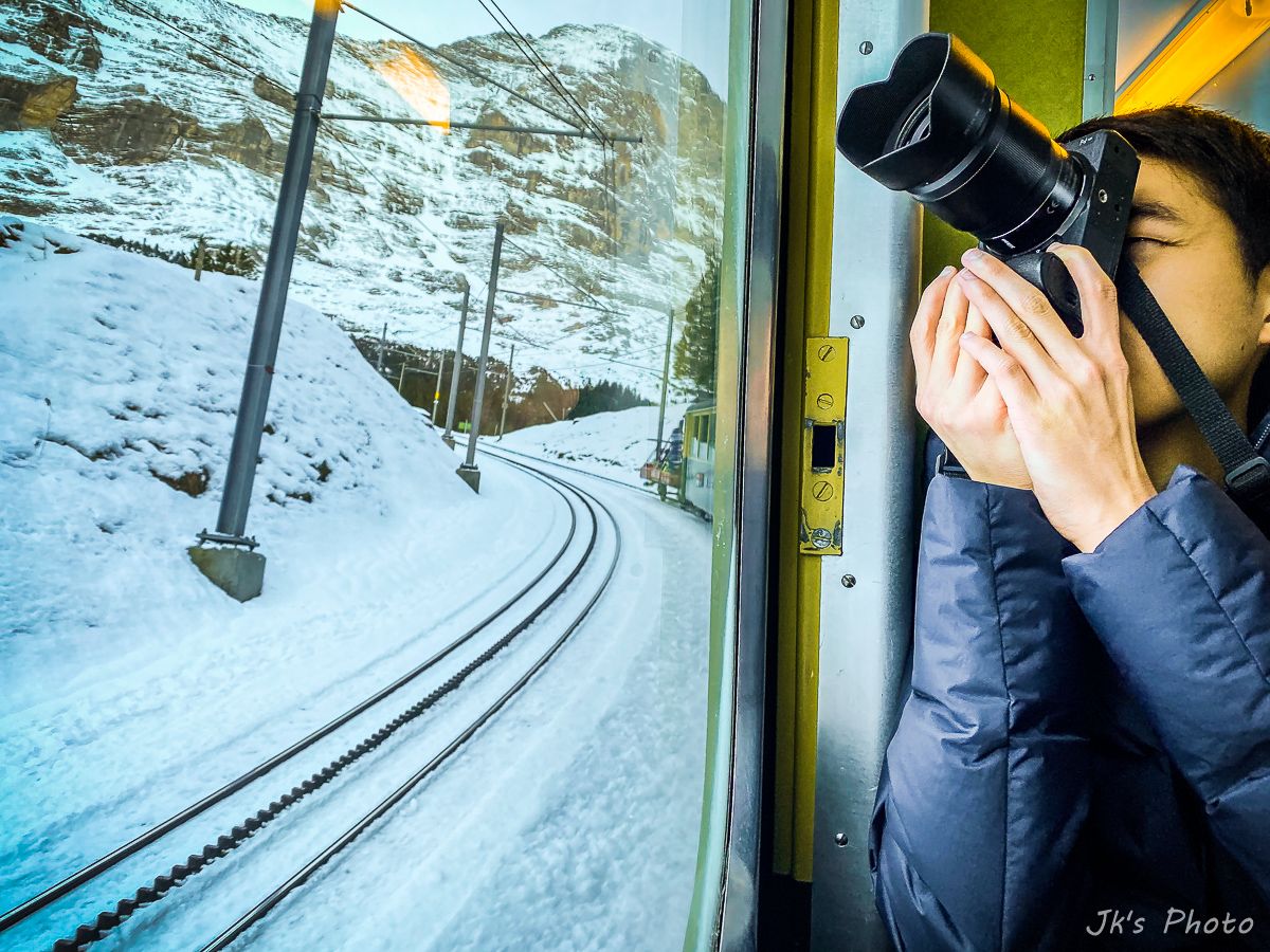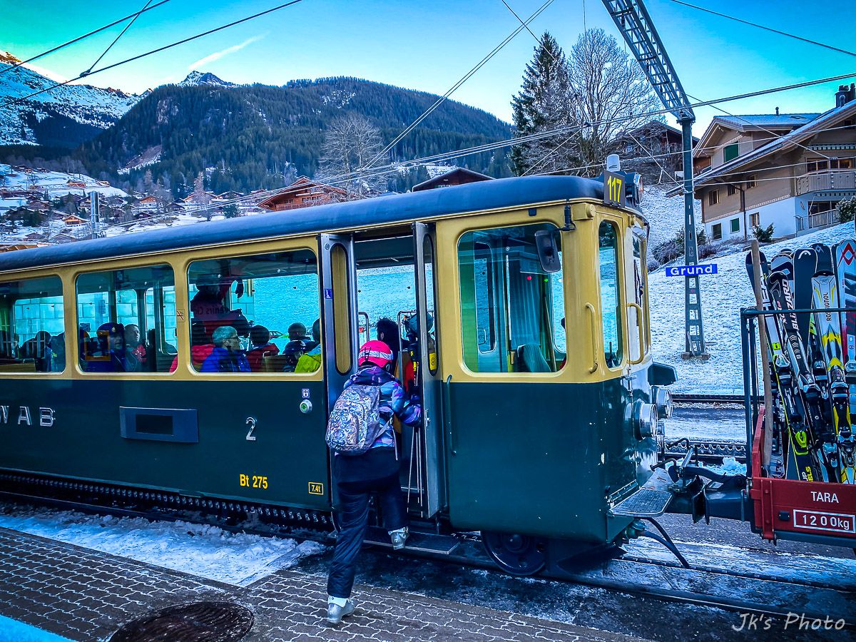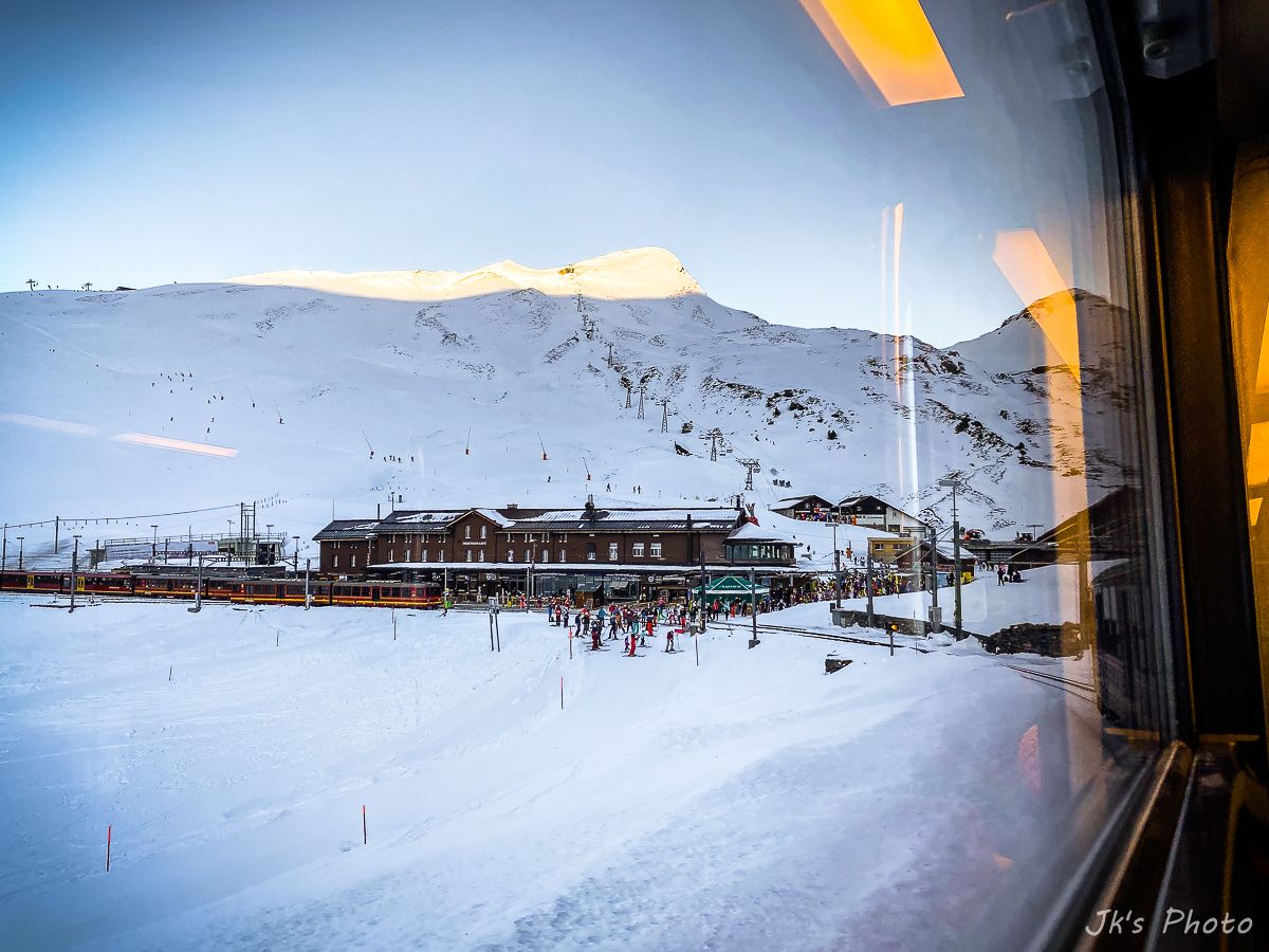 เปลี่ยนรถไฟ (สัเขียวเป็นสีแดง) ขึ้นเขา jungfrau